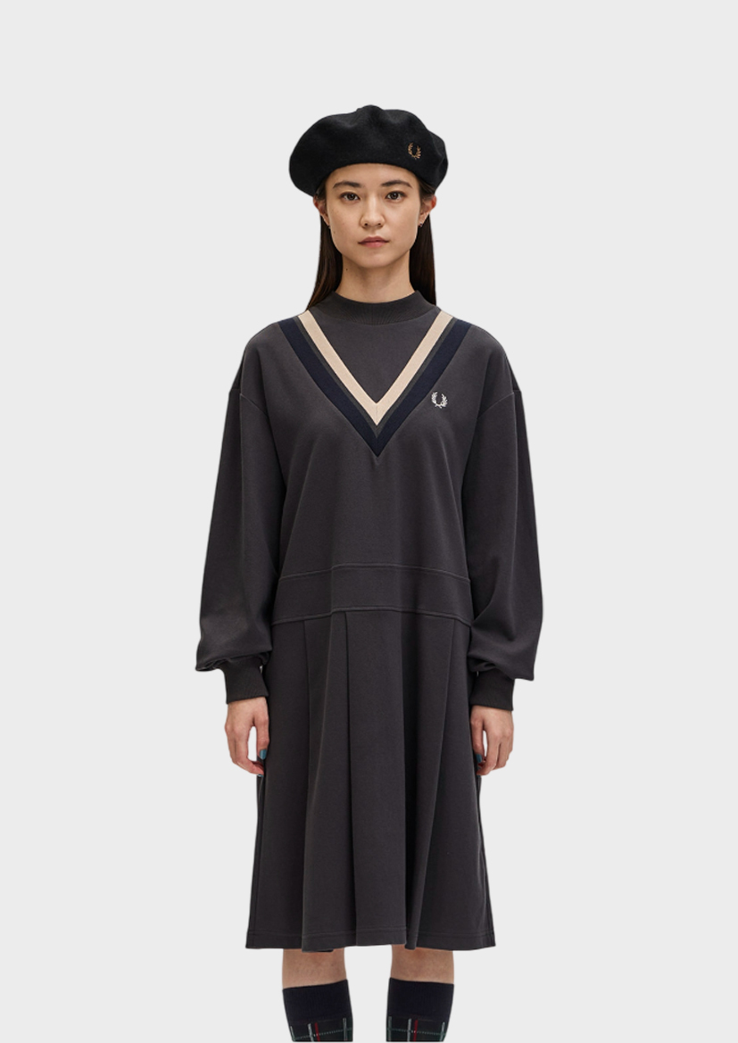 Платье из коллекции Fred Perry, выполненное из гладкого трикотажа. Модель изготовлена из 100% комфортного хлопчатобумажного материала.