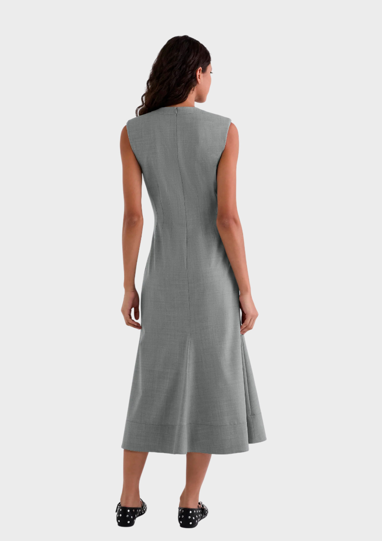 Платье идеально подчеркивает фигуру, демонстрируя элегантность и женственность. Высококачественный материал сохраняет форму и цвет после стирки. Универсальный серый оттенок легко комбинируется с аксессуарами и обувью.