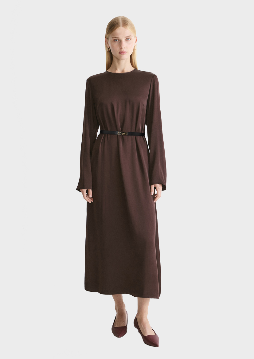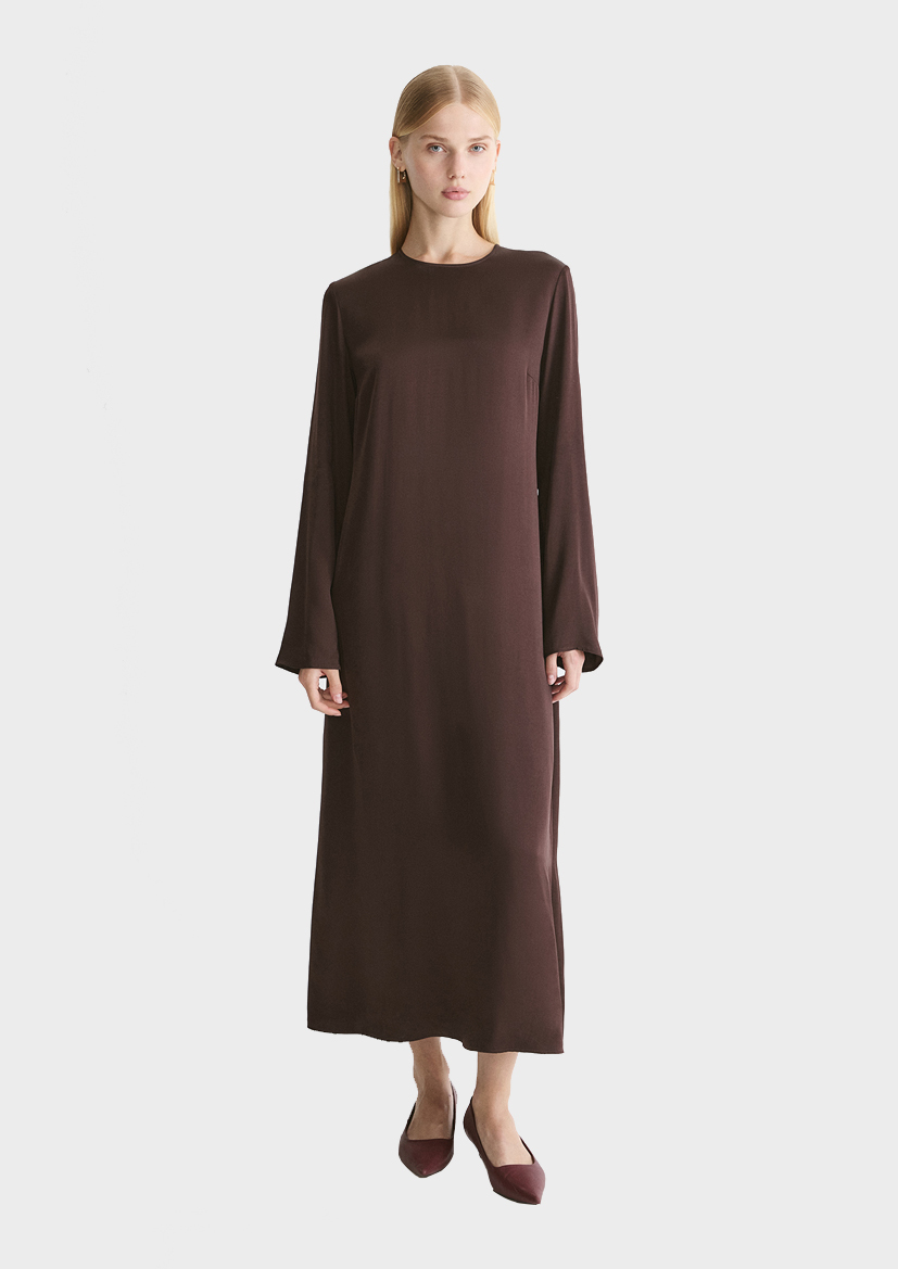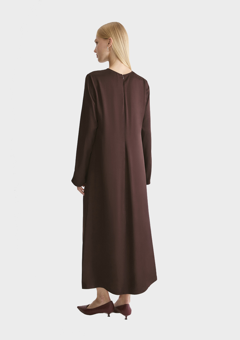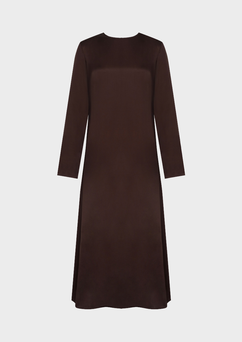 Платье прямого кроя в шоколадном оттенке - для тех, кто ценит лаконичность и комфорт. Эффектная длина, аккуратный круглый вырез, втачные рукава создают утонченный силуэт, анатомически верные нагрудные вытачки обеспечивают правильную посадку.