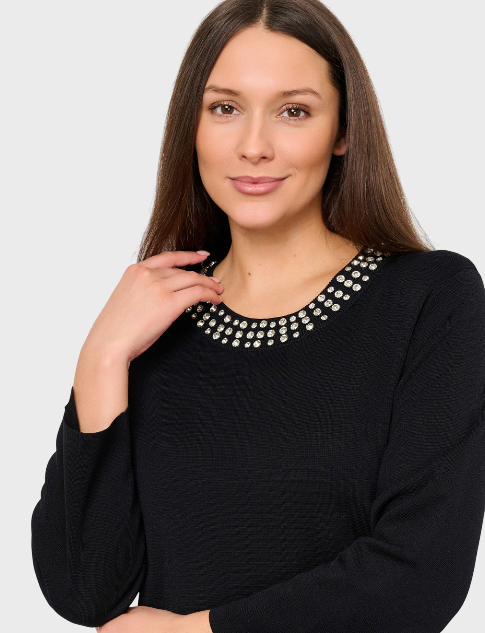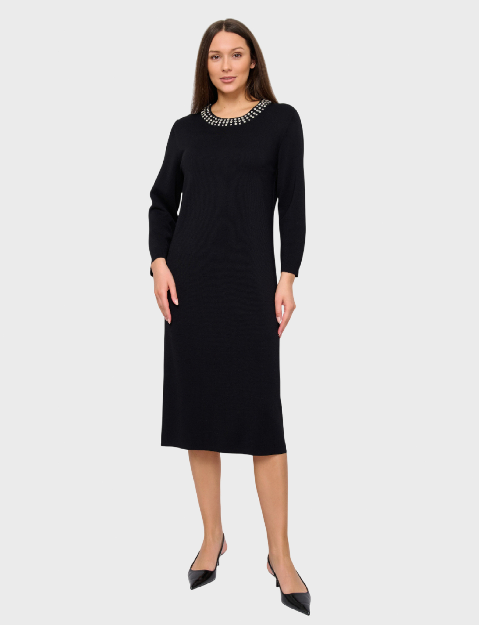 Черный цвет всегда актуален и подходит ко всему. Элегантная ткань из 80% вискозы и 20% полиамида дарит комфорт и свободу движений, подчеркивая женственность силуэта.