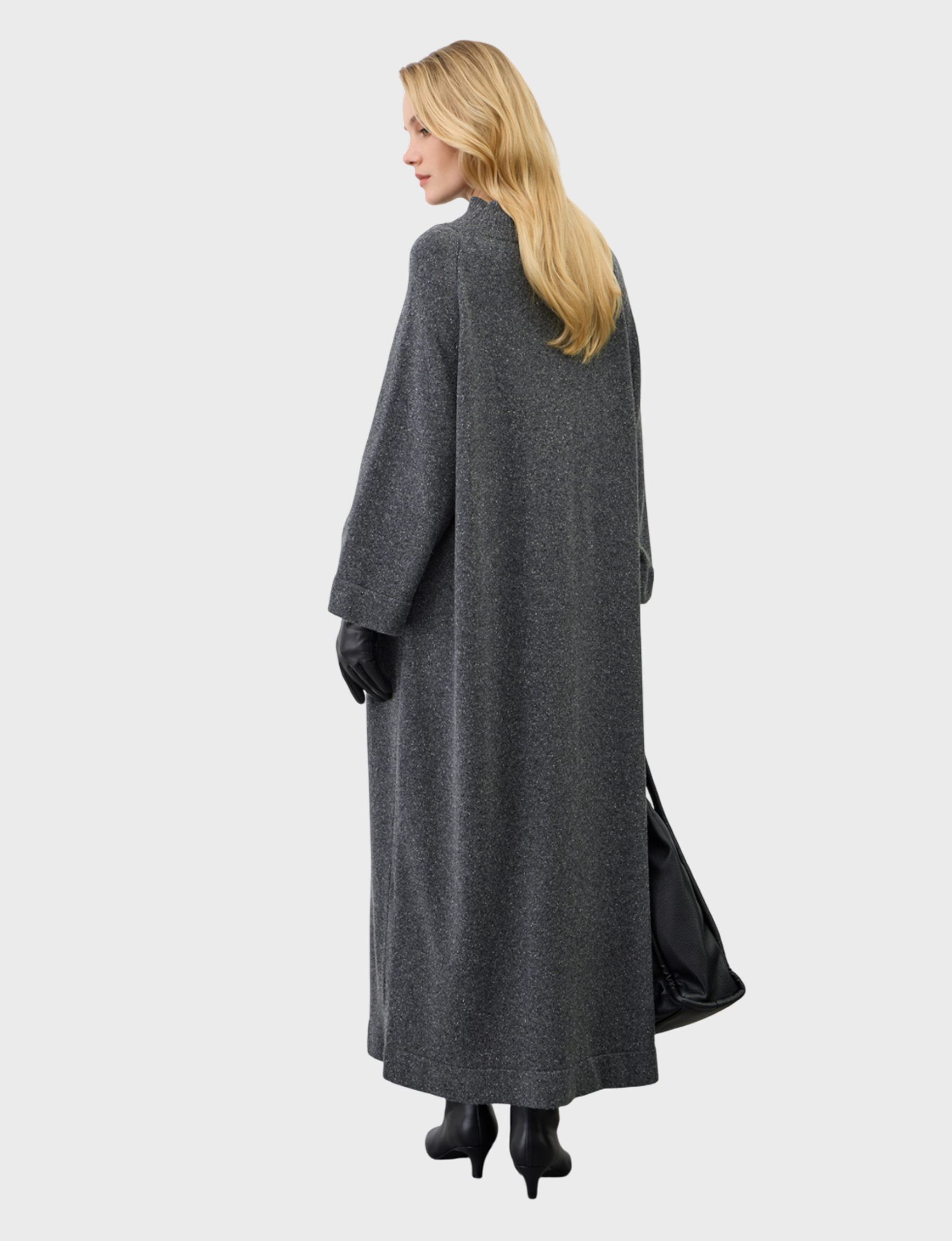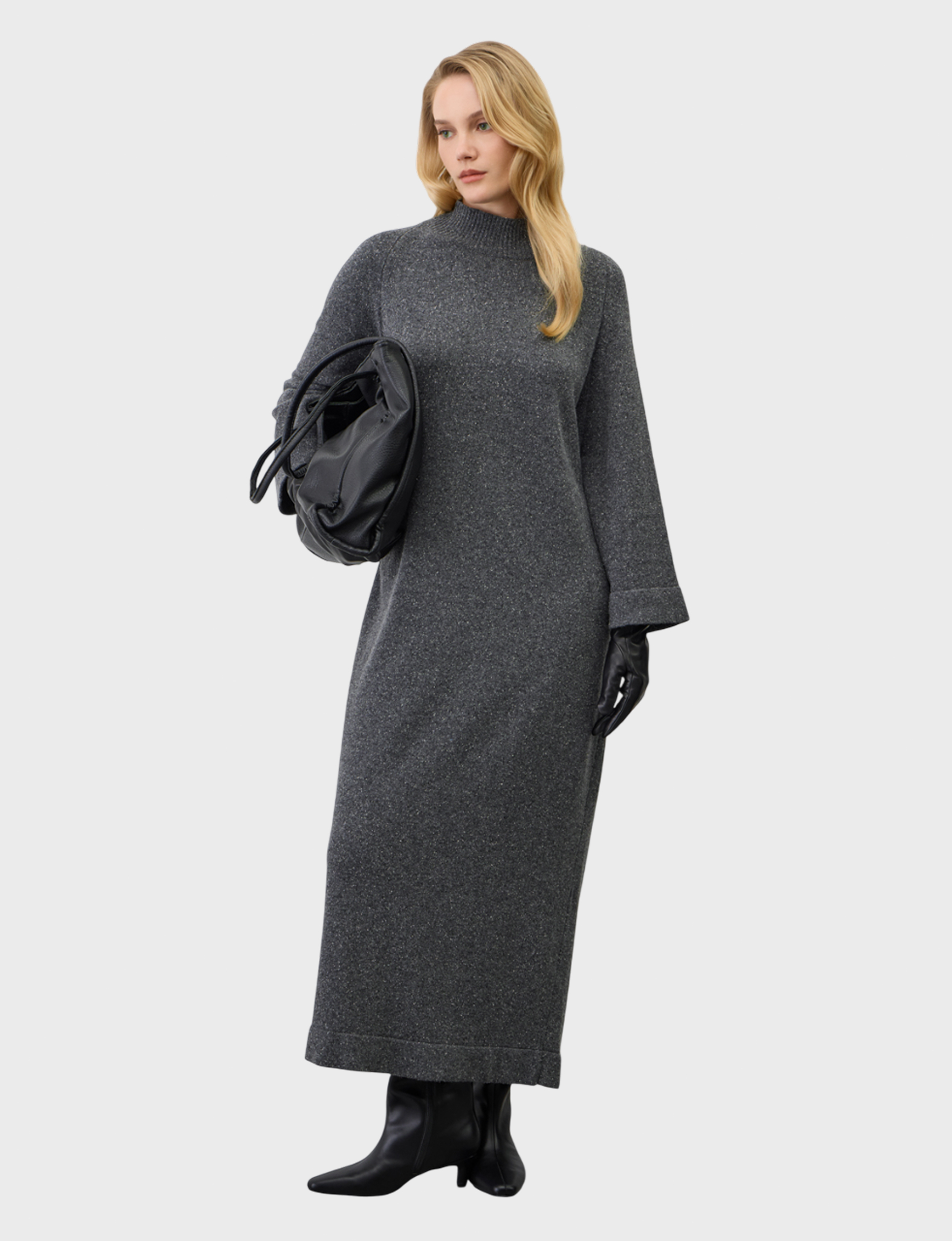 Платье из уникальной коллекции премиальных изделий, выполненных из итальянской шерсти, включает в себя мягчайшую шерсть мериноса и натуральный шелк. Это идеальное сочетание обеспечивает комфортное прилегание к телу, отличную терморегуляцию и воздухопроницаемость. Гладкая текстура с изысканными вкраплениями выглядит особенно стильно и современно.