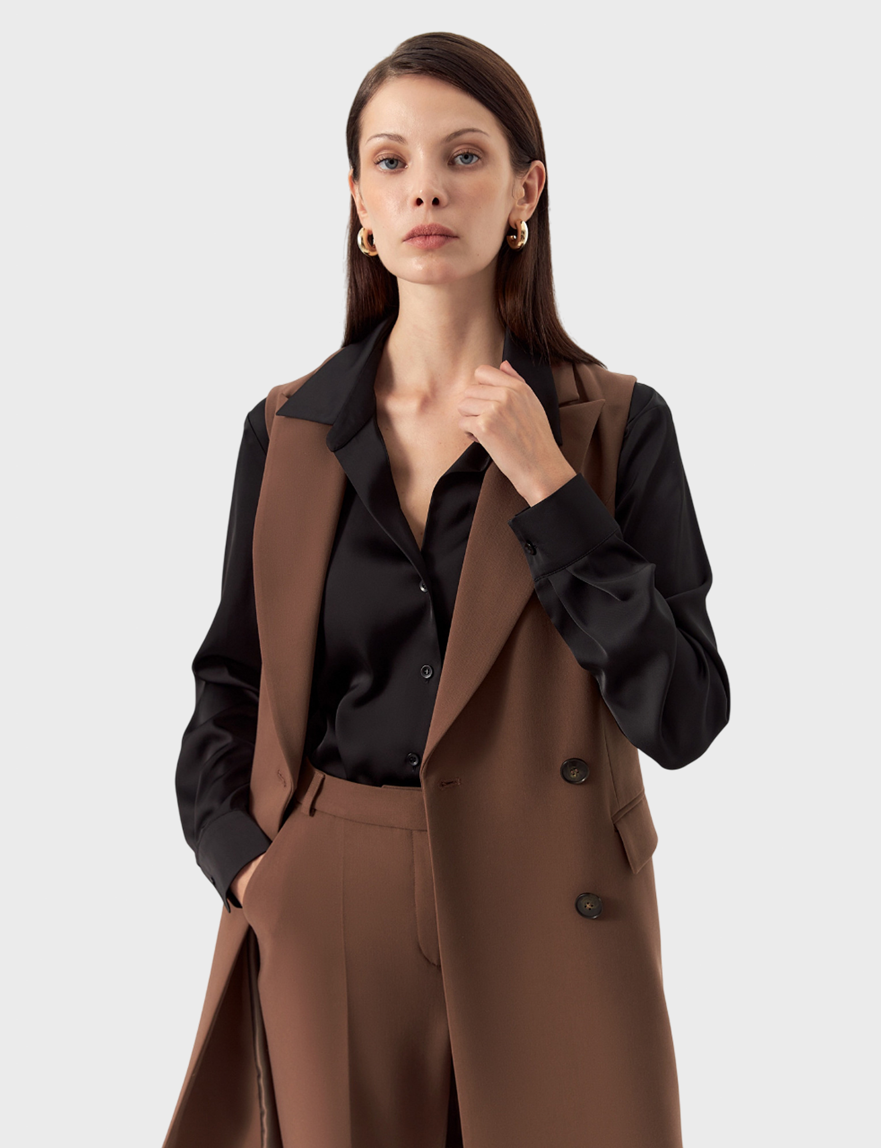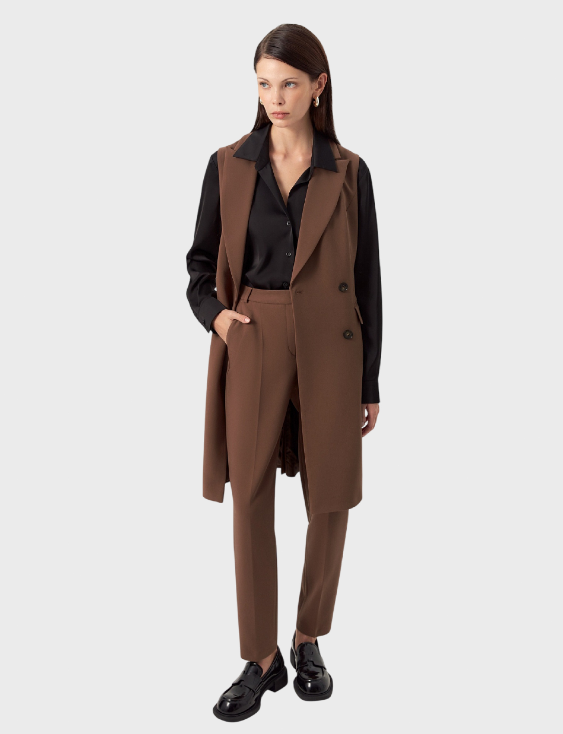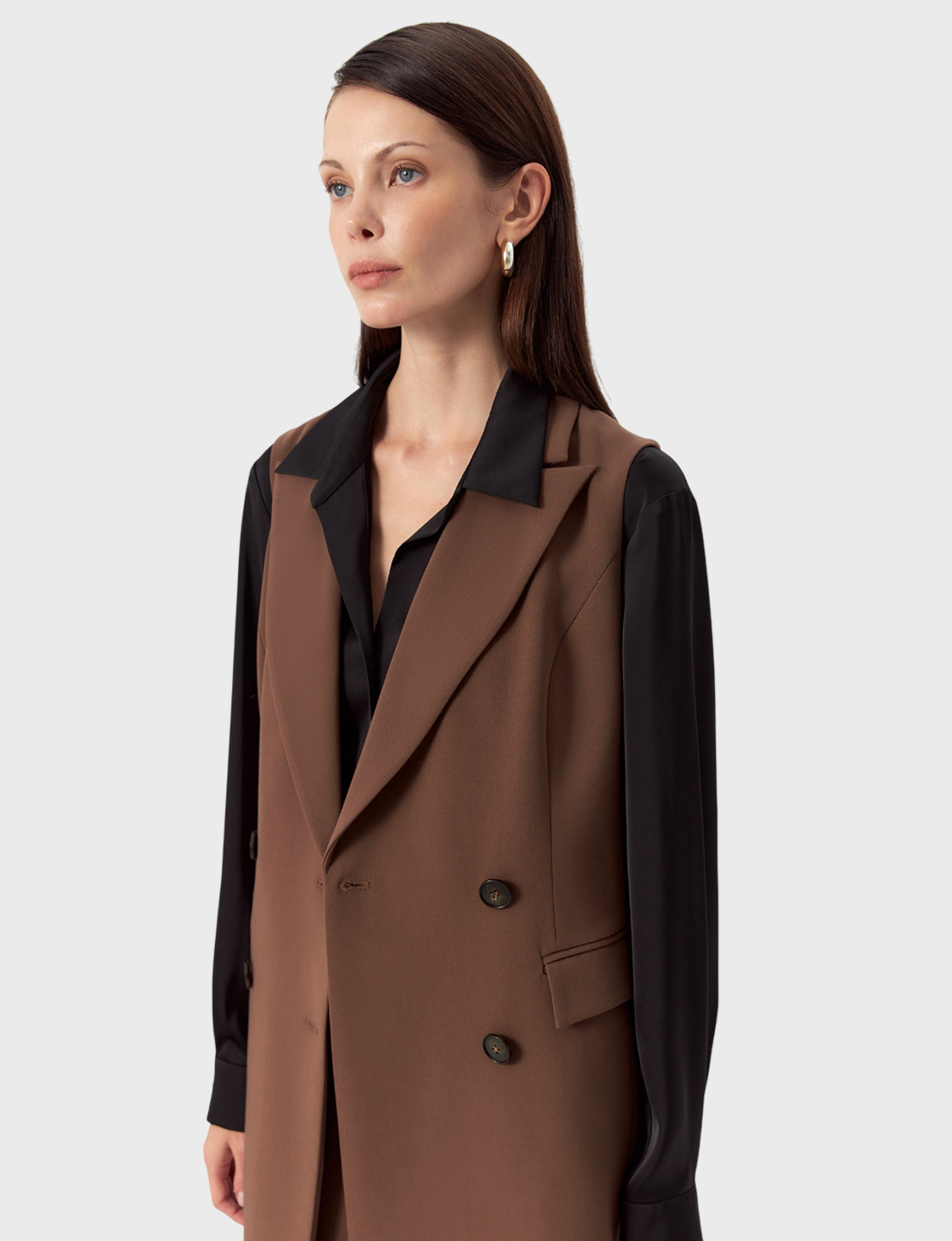 Платье-жилет Pompa – ваш идеальный выбор для стильного образа! В коричневом оттенке оно подчеркнёт вашу индивидуальность и создаст элегантный образ изыска и комфорта. Состав (63% полиэстер, 34% вискоза, 3% эластана) обеспечивает приятные ощущения при носке, долговечность ткани и сохранение внешнего вида после стирки. Платье легко сочетается с различными аксессуарами и обувью, позволяя создавать уникальные луки каждый день.
