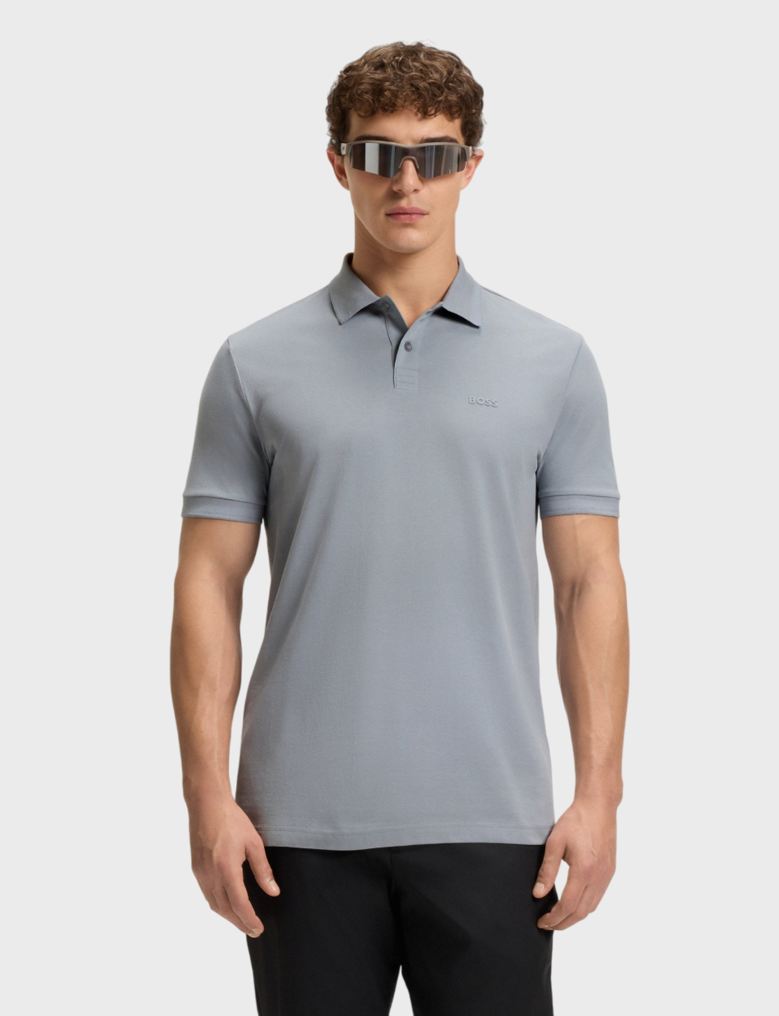 Серое поло BOSS Pio 1 – стильный выбор настоящих мужчин! Для комфортного ношения изделие выполнено из мягкого 100%-го хлопка, обеспечивающего свободу движений и приятный контакт с кожей.