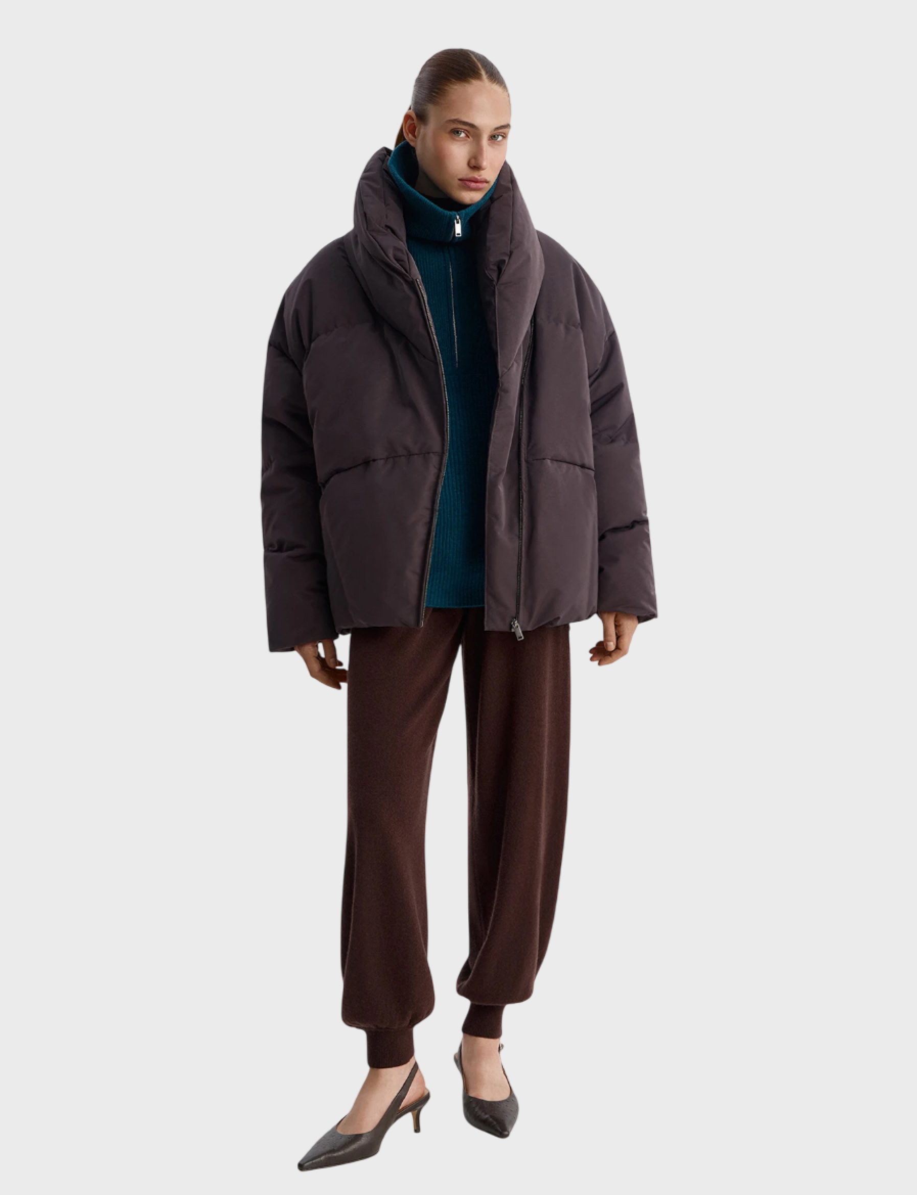 Теплый пуховик средней длины — до середины бедра. Застегивается на молнию. Для дополнительной защиты от холода ширину изделия можно корректировать с помощью специальной регулировки, идущей по низу. Детали: внутренний карман, два кармана с застежкой на молнию, брендированная подкладка и фурнитура.