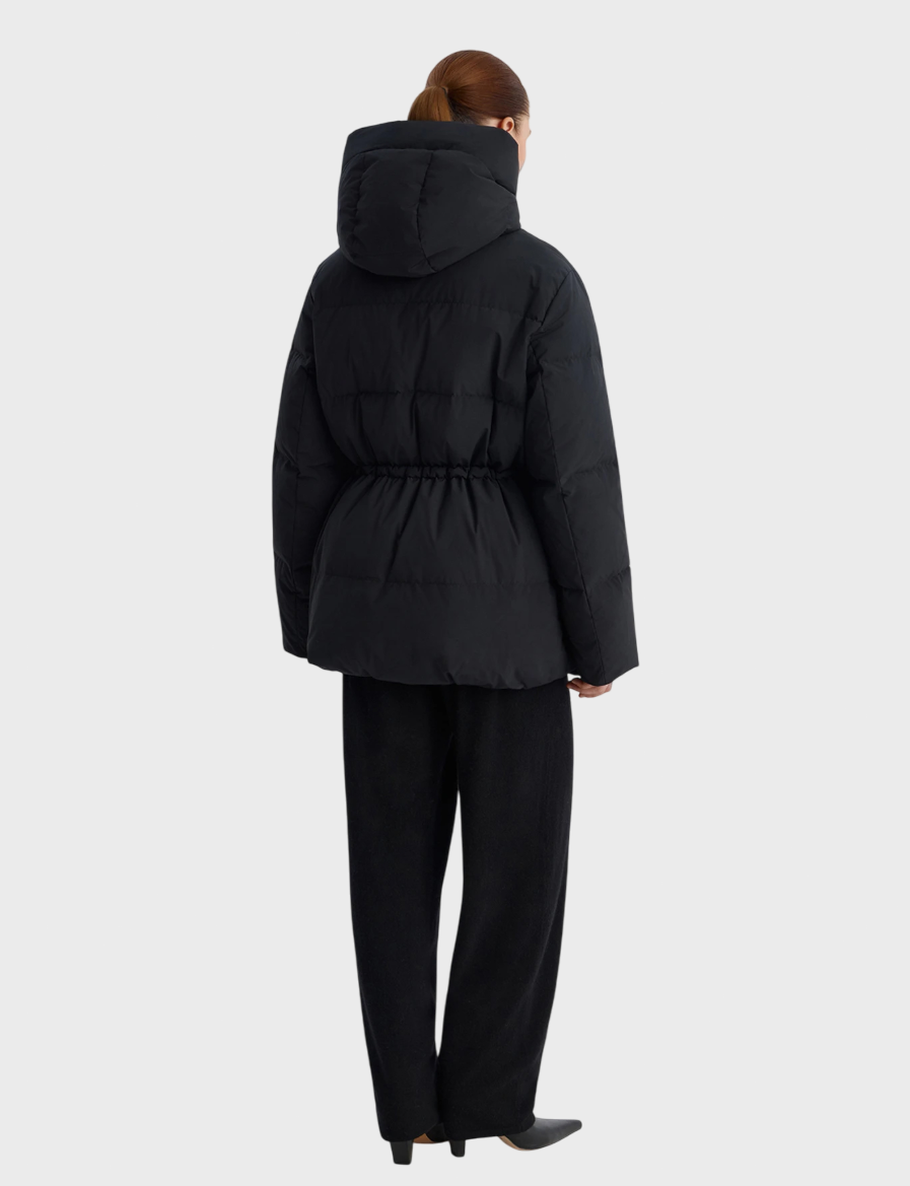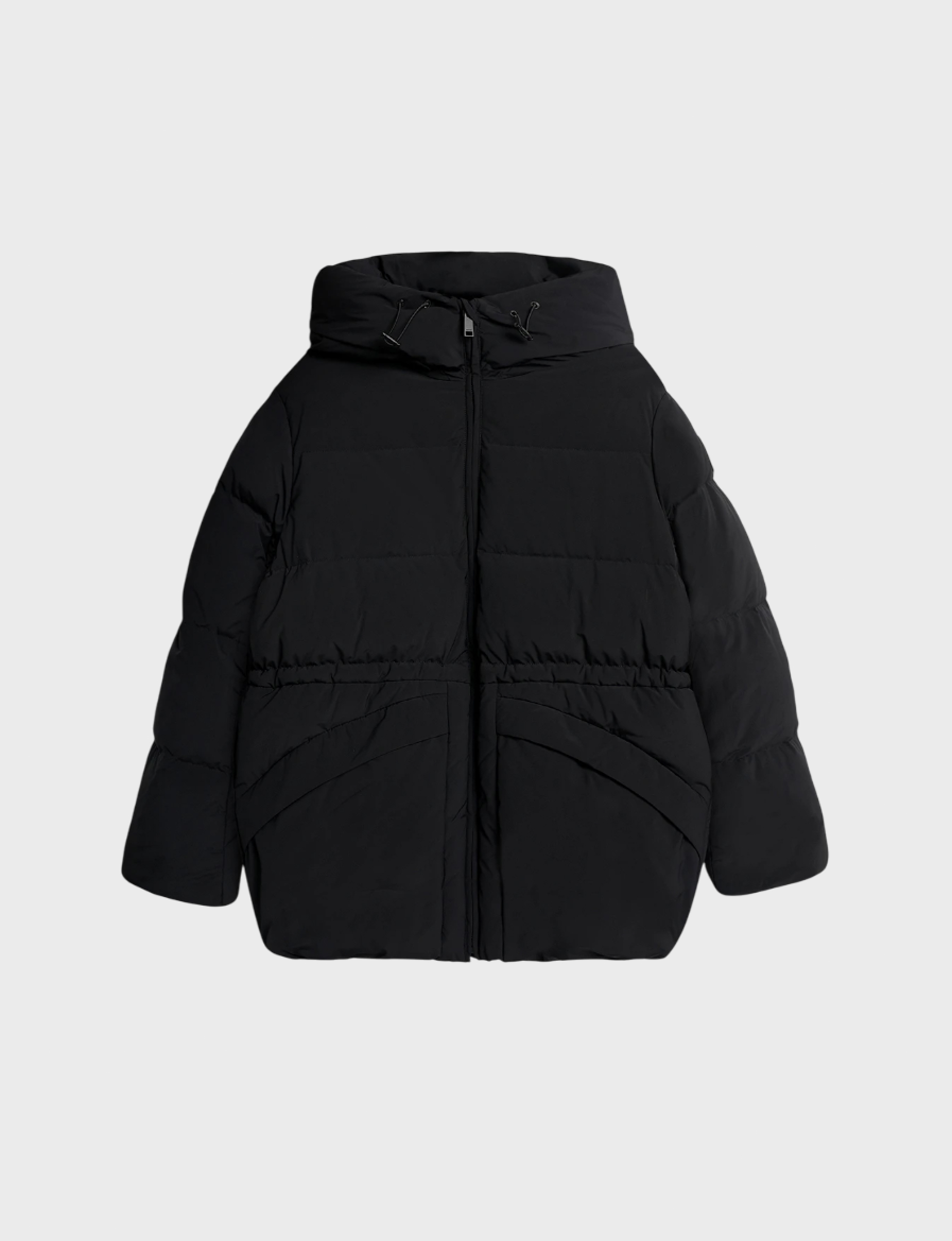 Пуховик средней длины с регулярной посадкой. Комфортная модель с регулируемым капюшоном, внутренней кулиской по талии и манжетами по низу рукавов. Детали: прорезные карманы, брендированная подкладка и фурнитура.