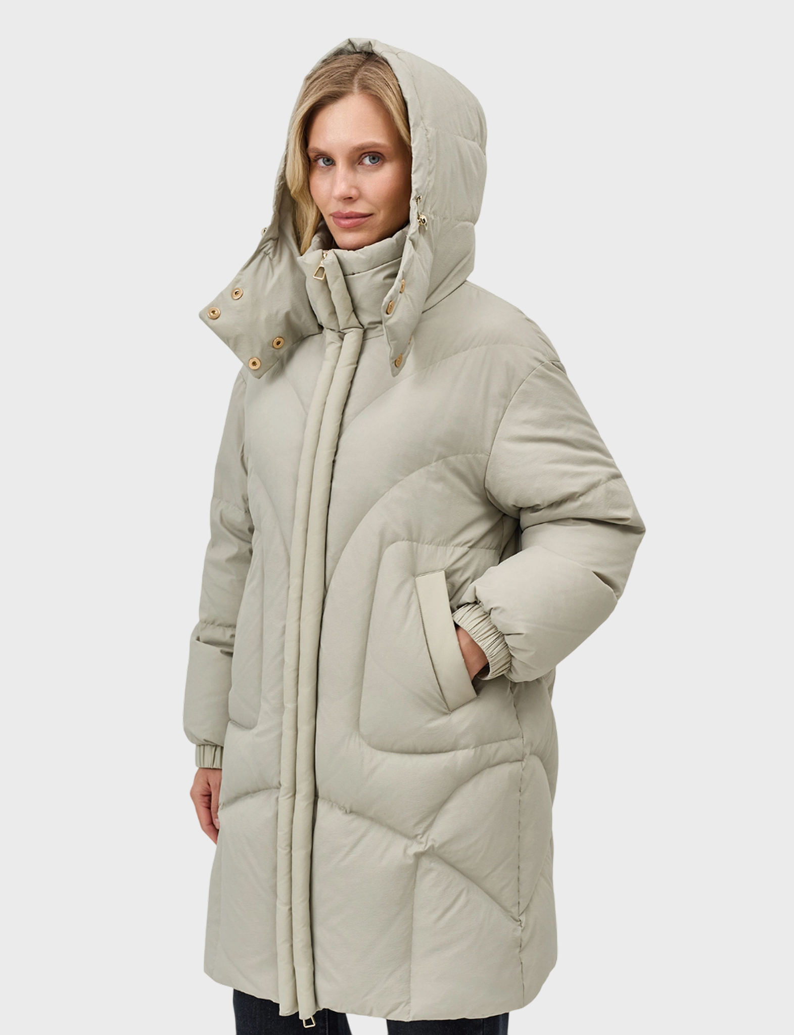 Женский пуховик Bulmer серо-зеленого цвета — идеальный выбор для зимы! Удобная модель из 100%-го нейлона сверху и премиального состава утеплителя (90% пух, 10% перо) сохранит тепло даже при сильных морозах. Легкий, теплый и невероятно комфортный – он станет вашим лучшим другом зимой. Стильный дизайн подчеркнет индивидуальность и создаст элегантный образ. Пуховик легко ухаживать, долго сохраняет форму и цвет.