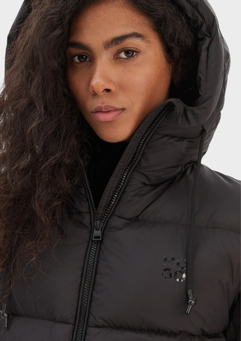 Пуховик Hugo черного цвета сочетает комфорт и стиль благодаря сочетанию высококачественных материалов: 100%-й полиамид защищает от непогоды, а натуральный наполнитель (80% пух, 20% перо) гарантирует тепло и уют. Этот сезонный тренд добавит уверенности в вашем образе и подчеркнет индивидуальность.