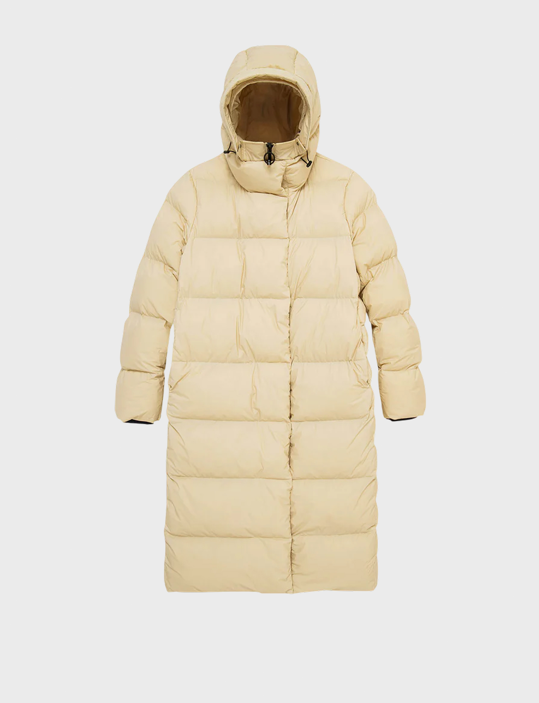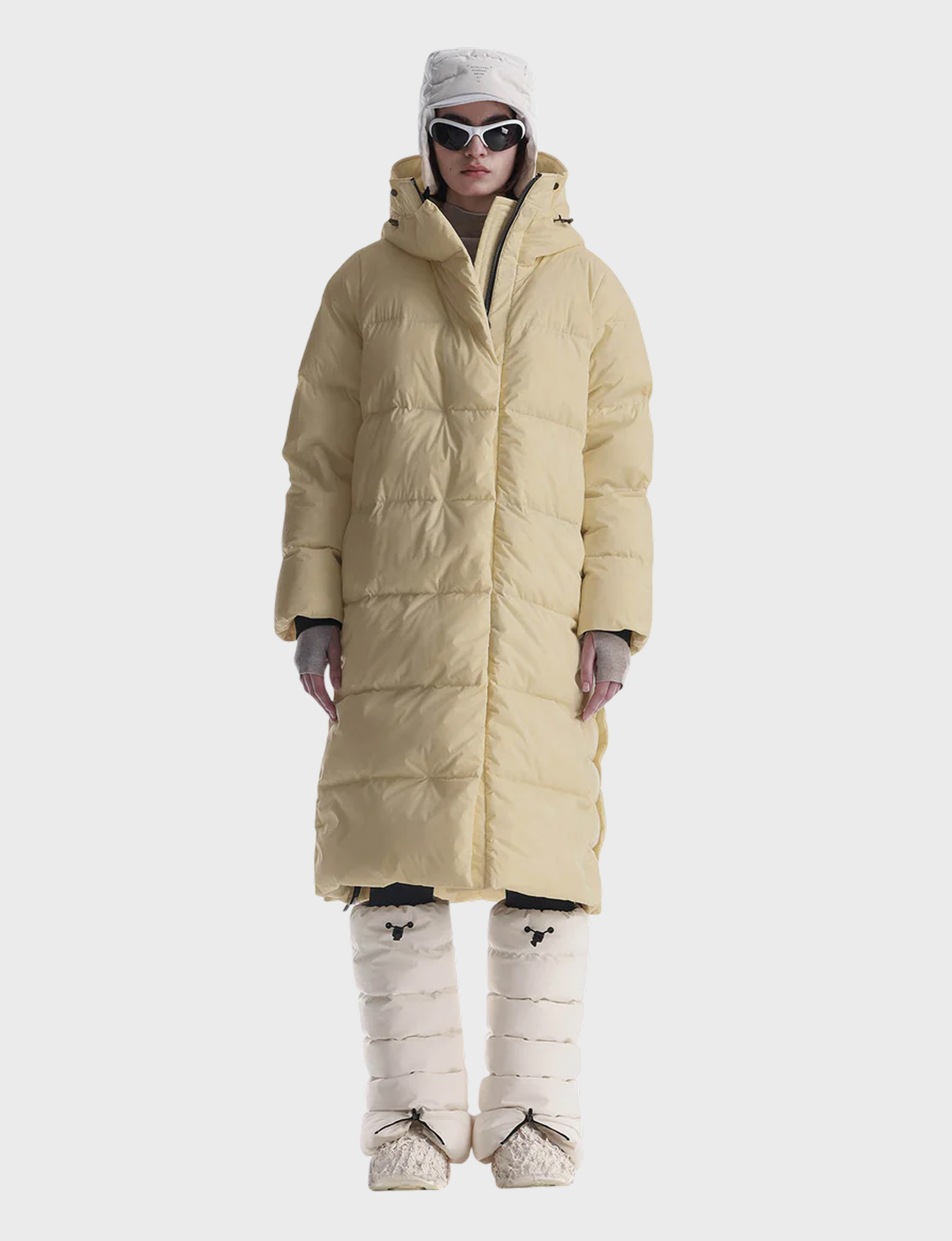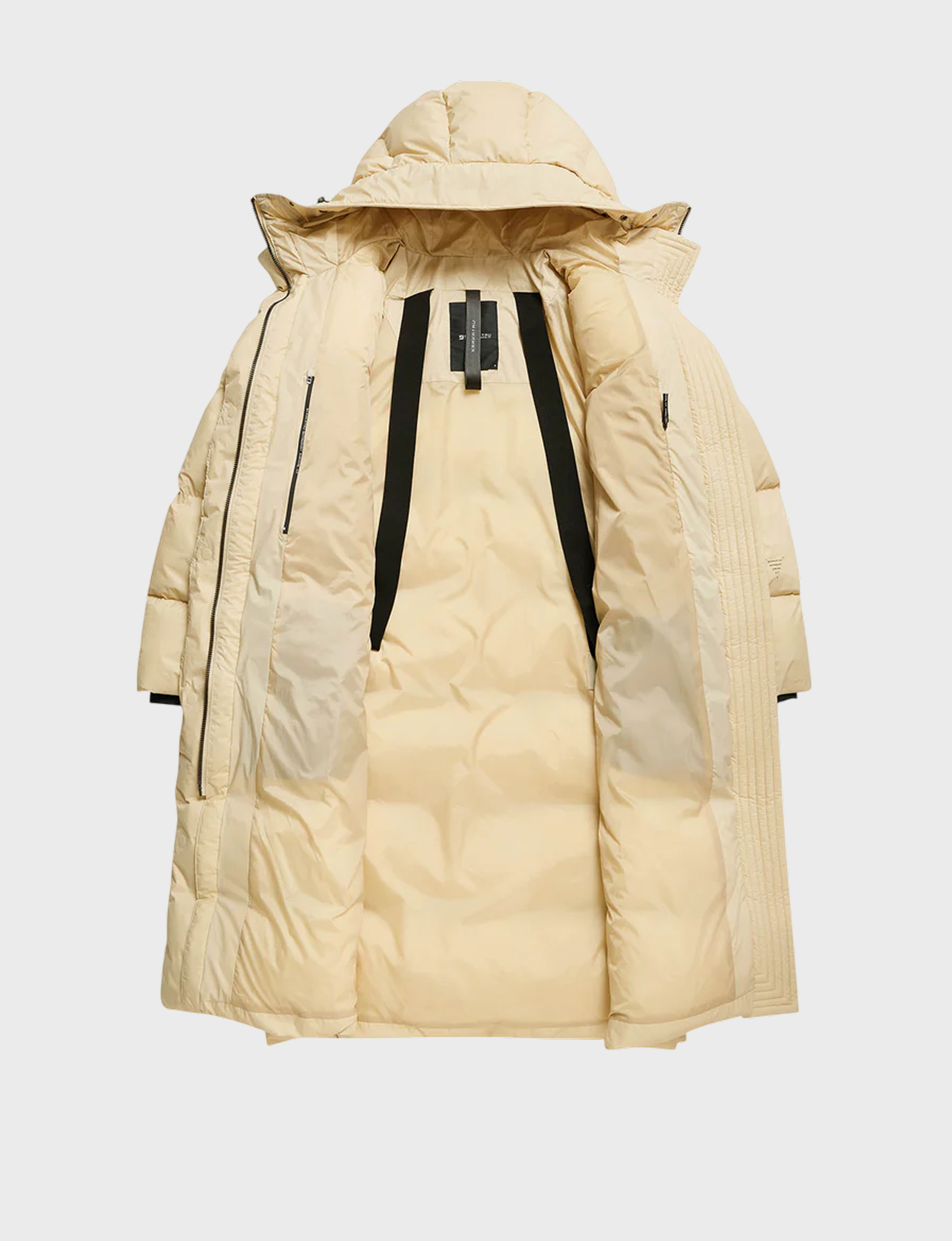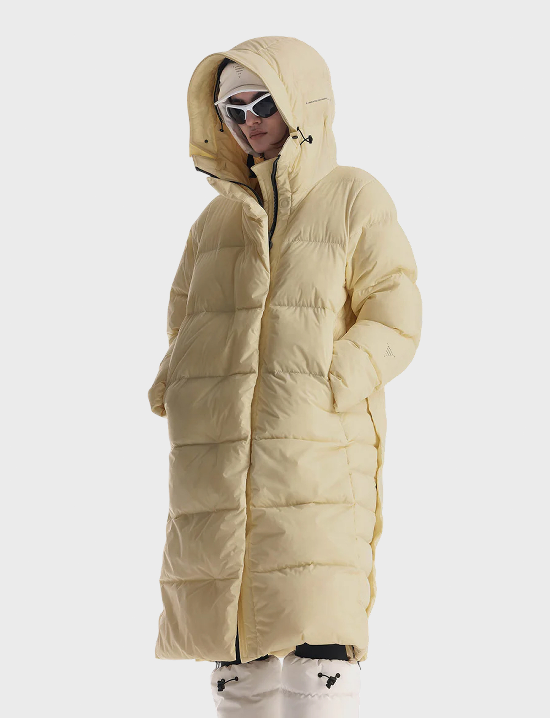 Удлинённый пуховик AITKEN из функциональной ткани с фольгированным и антистатическим покрытием. Утеплитель лёгкий, тёплый, устойчивый к влаге и сохраняет форму. Объёмный капюшон с широким отворотом и защитой лба, вентиляции на молниях, магнитная ветрозащитная планка и внутренние стропы — конструкция собрана для холода, движения и адаптации к непогоде.