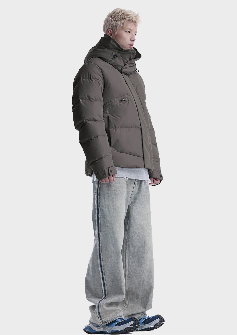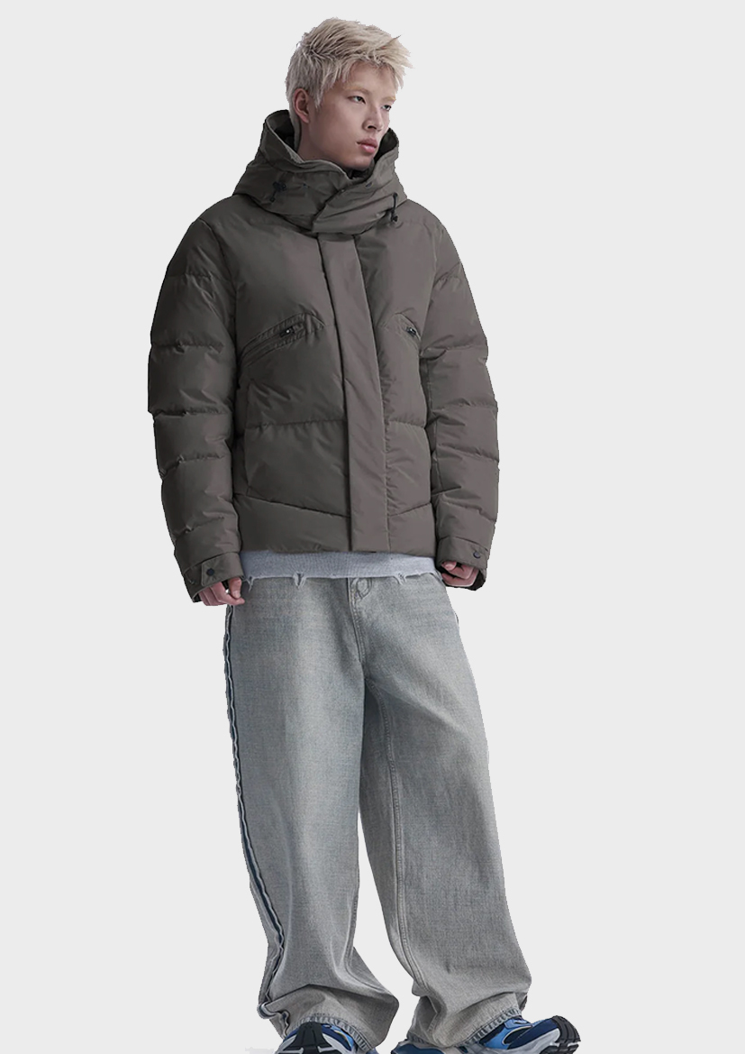 Короткий водостойкий пуховик AITKEN из функциональной ткани. Утеплитель сочетает натуральный пух и синтетическое волокно — тёплый, лёгкий, устойчивый к влаге и сохраняет форму. Съёмный капюшон с армированным отворотом, вентиляционная планка на магнитах, внутренние стропы для ношения за плечами, продуманная система карманов — всё рассчитано на защиту, мобильность и комфорт.