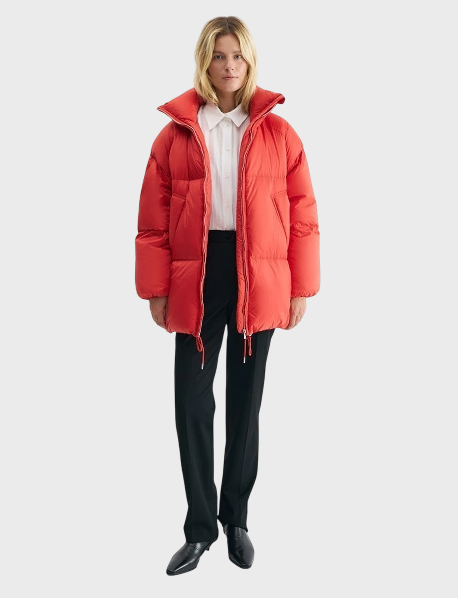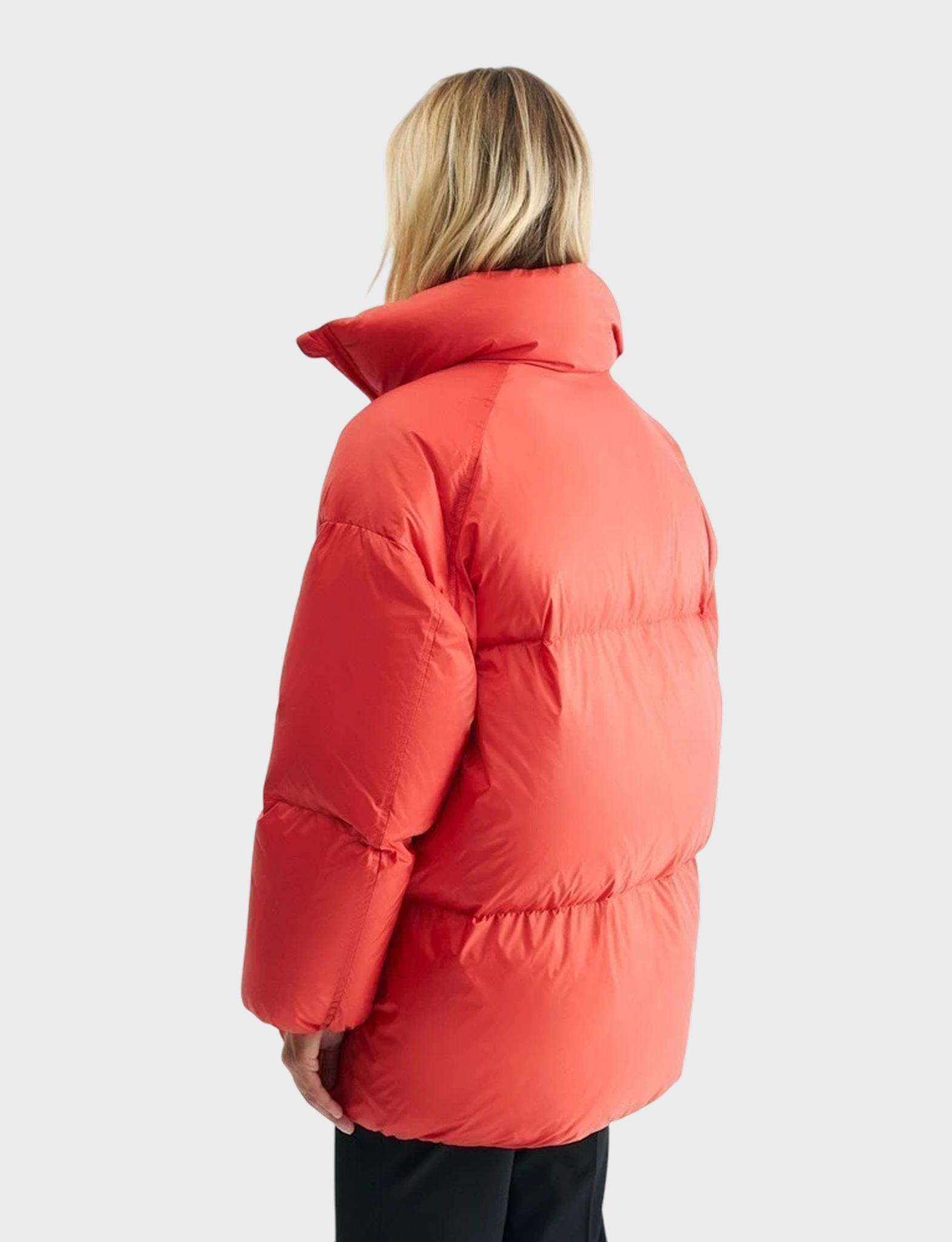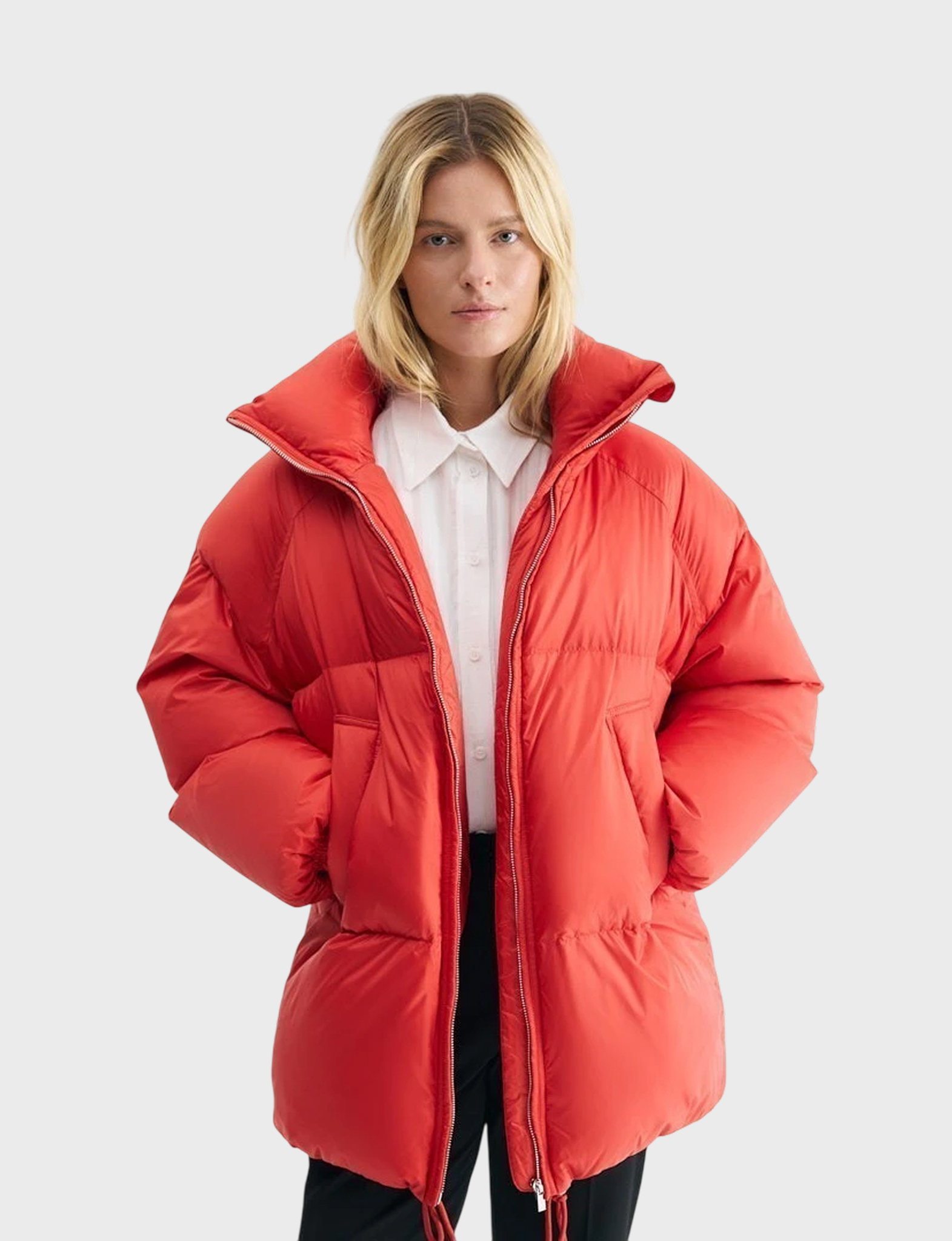 Яркий красный цвет подчеркнёт вашу индивидуальность. Верх из 100%-го нейлона защищает от непогоды. Пуховый наполнитель (90% пух, 10% перо) сохранит тепло даже зимой. Укороченная длина идеально подойдёт к вашим любимым джинсами или брюками.