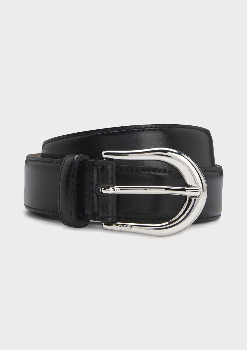 Этот пояс BOSS придаст изысканности повседневным образам. Изготовлен в Италии из гладкой кожи. Серебристая пряжка с закругленными краями. Для лучшей посадки мы рекомендуем заказывать ремень на размер больше, чем размер вашей талии.