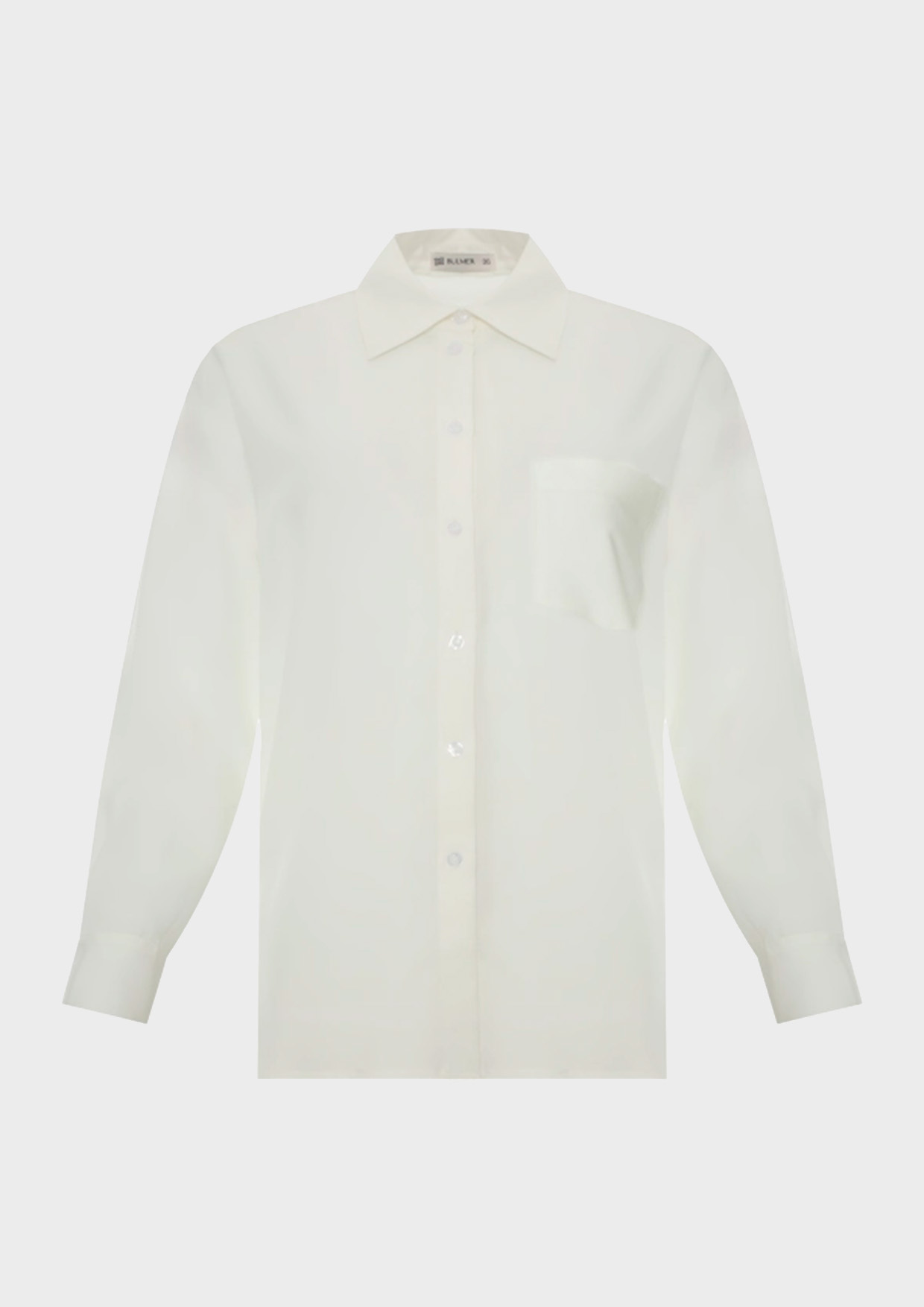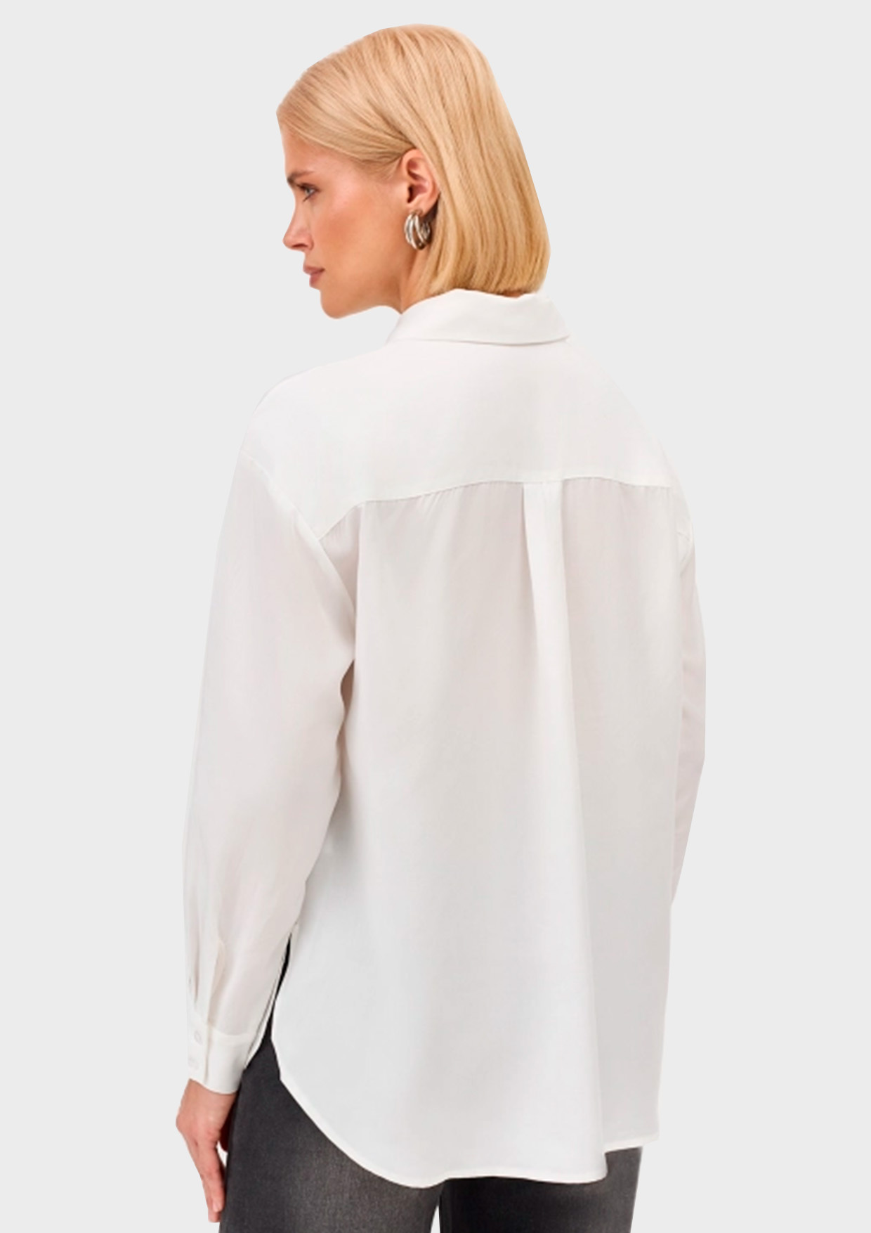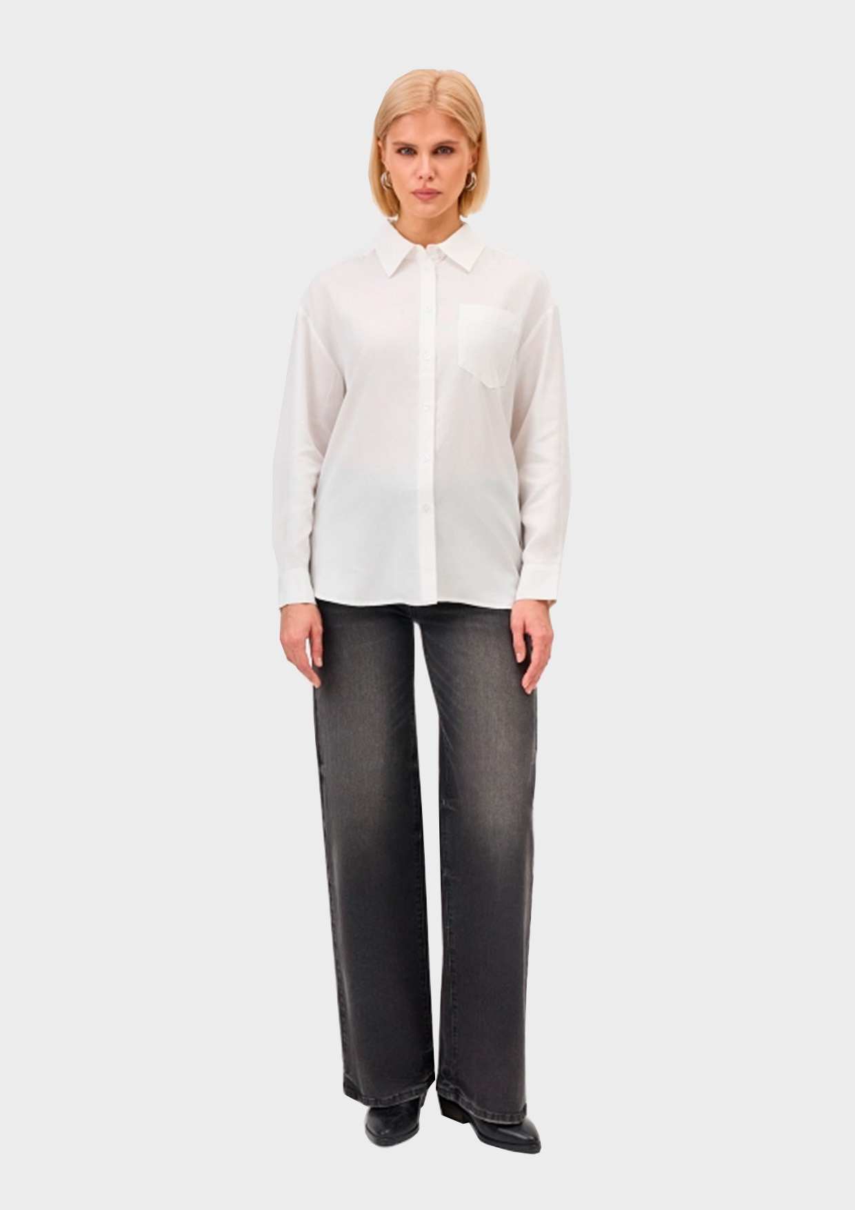 Базовая рубашка из 100% тенселя. Прямой силуэт. Отложной воротник. Длинные рукава с манжетами. Накладной нагрудный карман. Застежка на пуговицы.