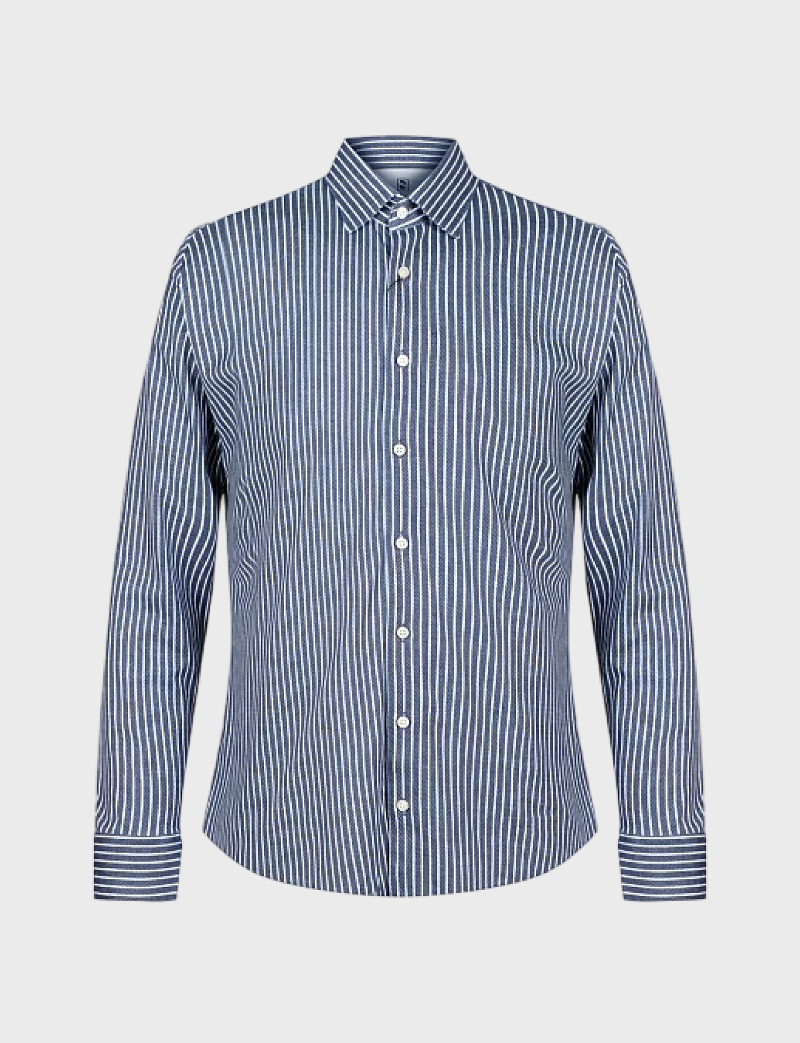 Представляем вашему вниманию мужскую рубашку DESOTO Casual Kent – стильный выбор для вашего гардероба! Эта рубашка станет вашим лучшим другом осенью и зимой благодаря качественному материалу из 100%-го хлопка, обеспечивающему комфорт даже в прохладную погоду. Тёмно-синяя палитра гармонично сочетается со сдержанным белым тоном, создавая элегантность образа и подчеркивая индивидуальность владельца.