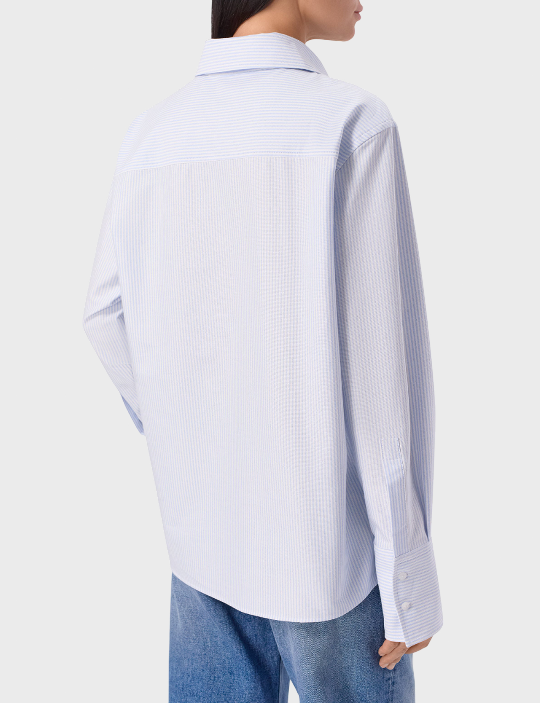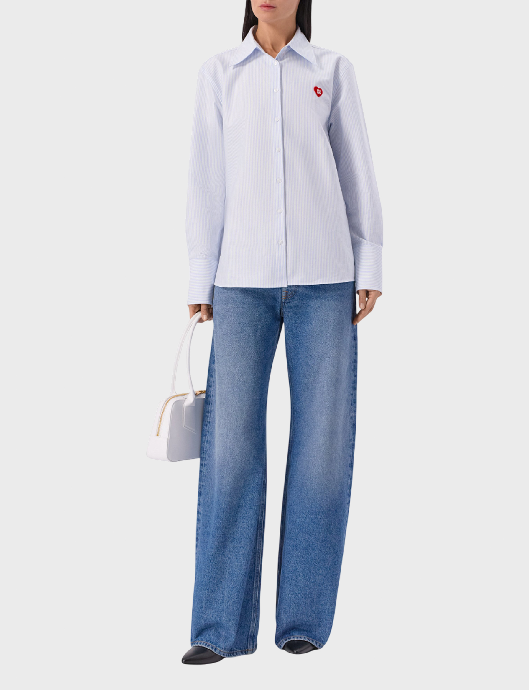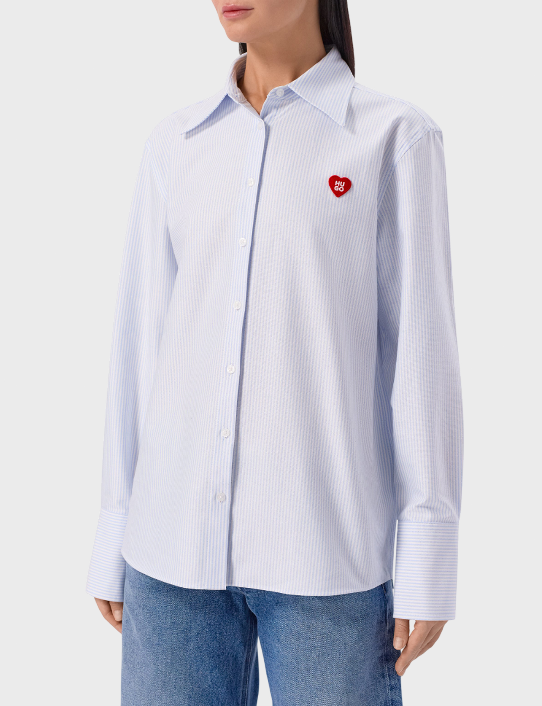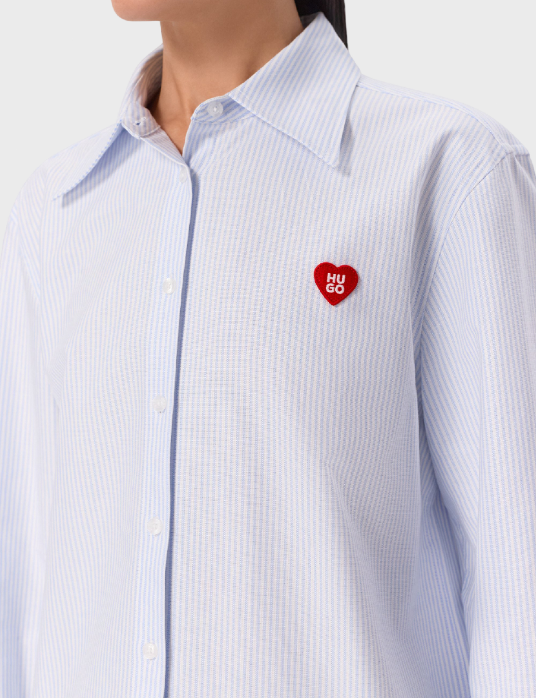 Рубашка Erselia свободного кроя выполнена из хлопка оксфорд в полоску. Модель со спущенной линией плеч и широкими манжетами украшена брендированной нашивкой в форме сердца.