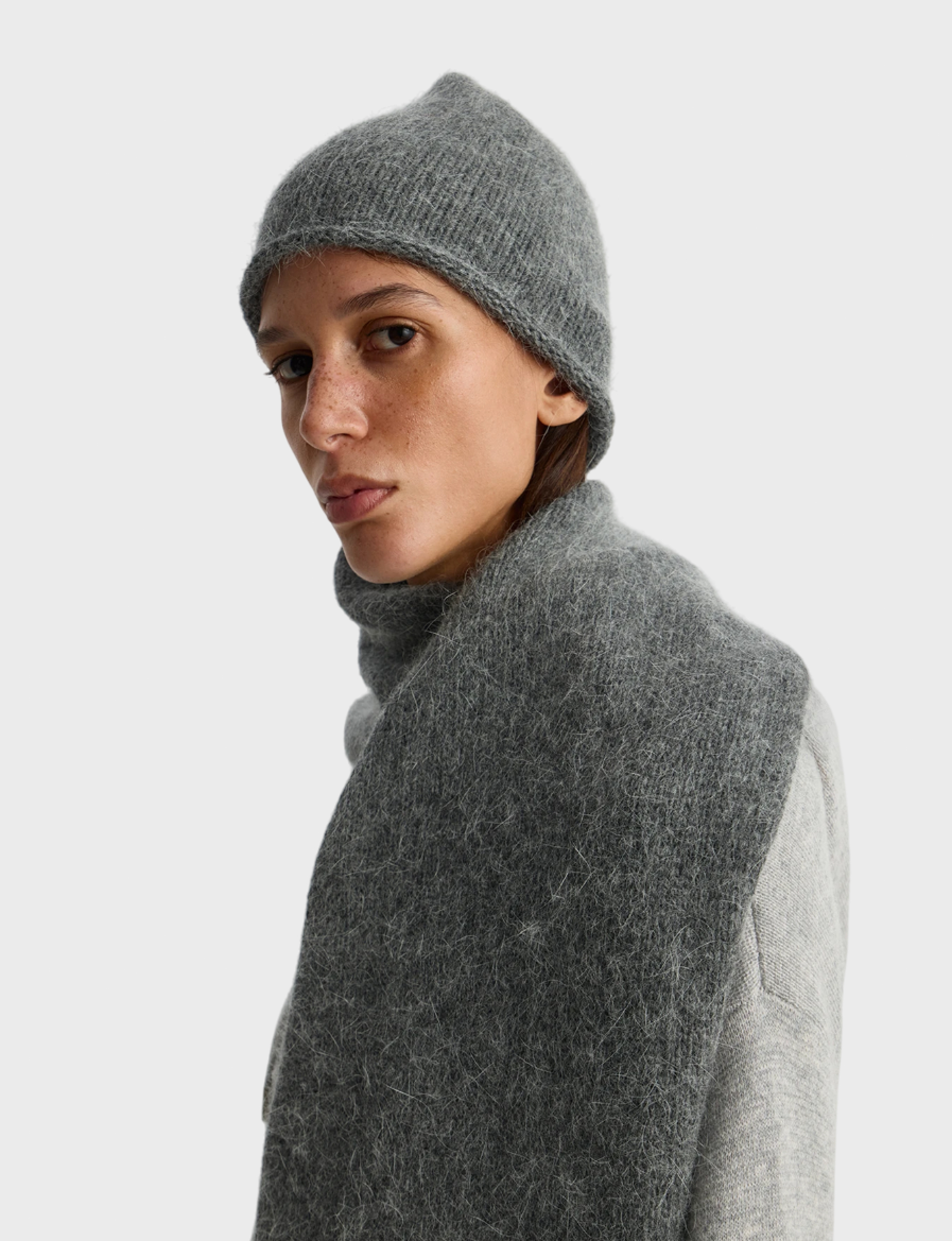 Изделие выполнено гладким переплетением из мягкой, но при этом плотной ангорской шерсти с добавлением нейлона.