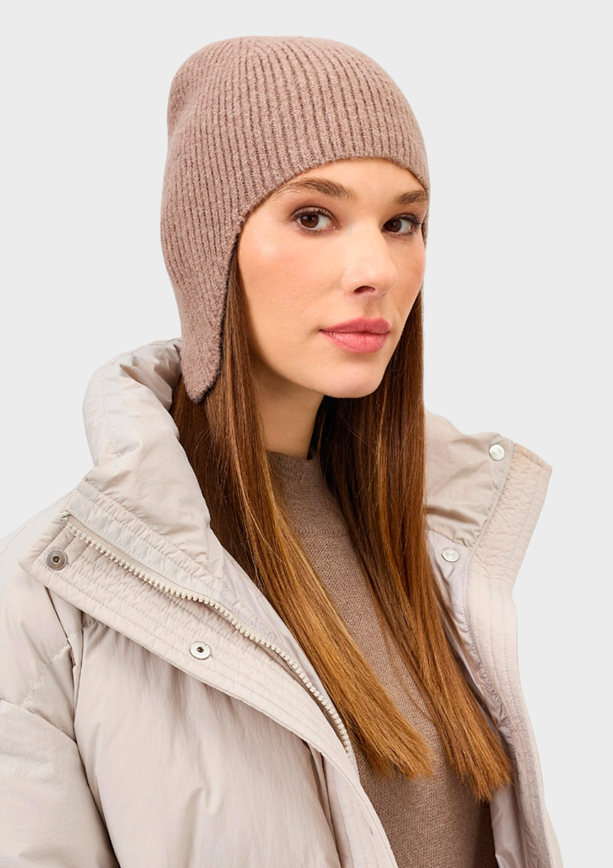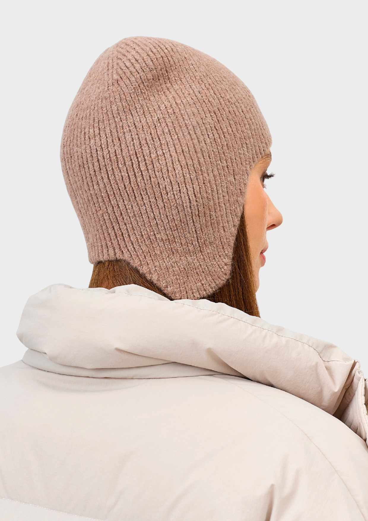 Шапка-чепчик в рубчик с фактурным вырезом. В составе вискоза и шерсть.