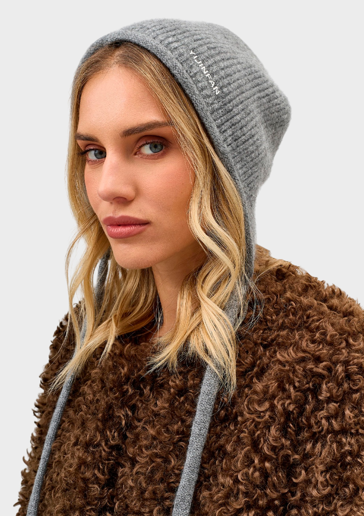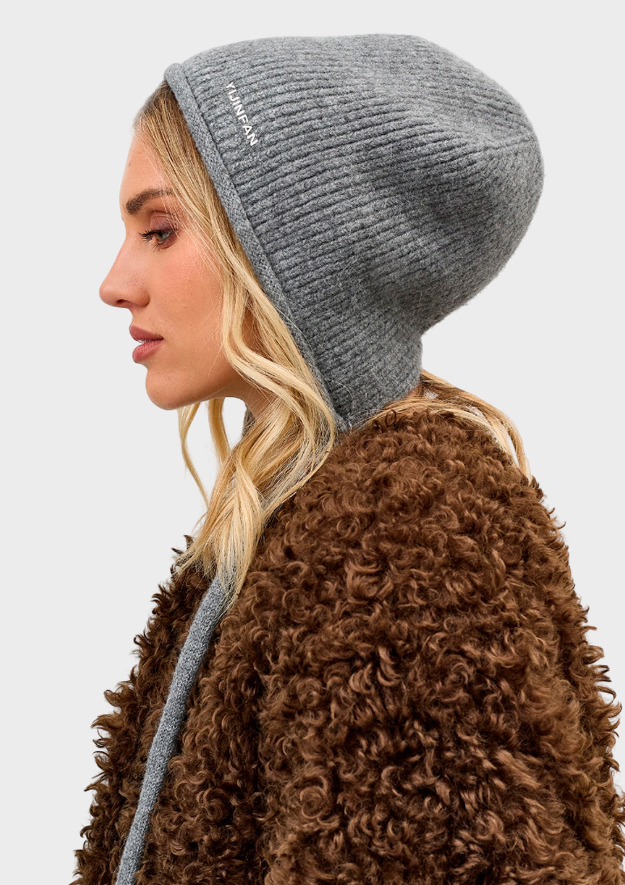 Шапка-чепчик с завязками и закругленным краем вокруг лица. Вязка в рубчик.