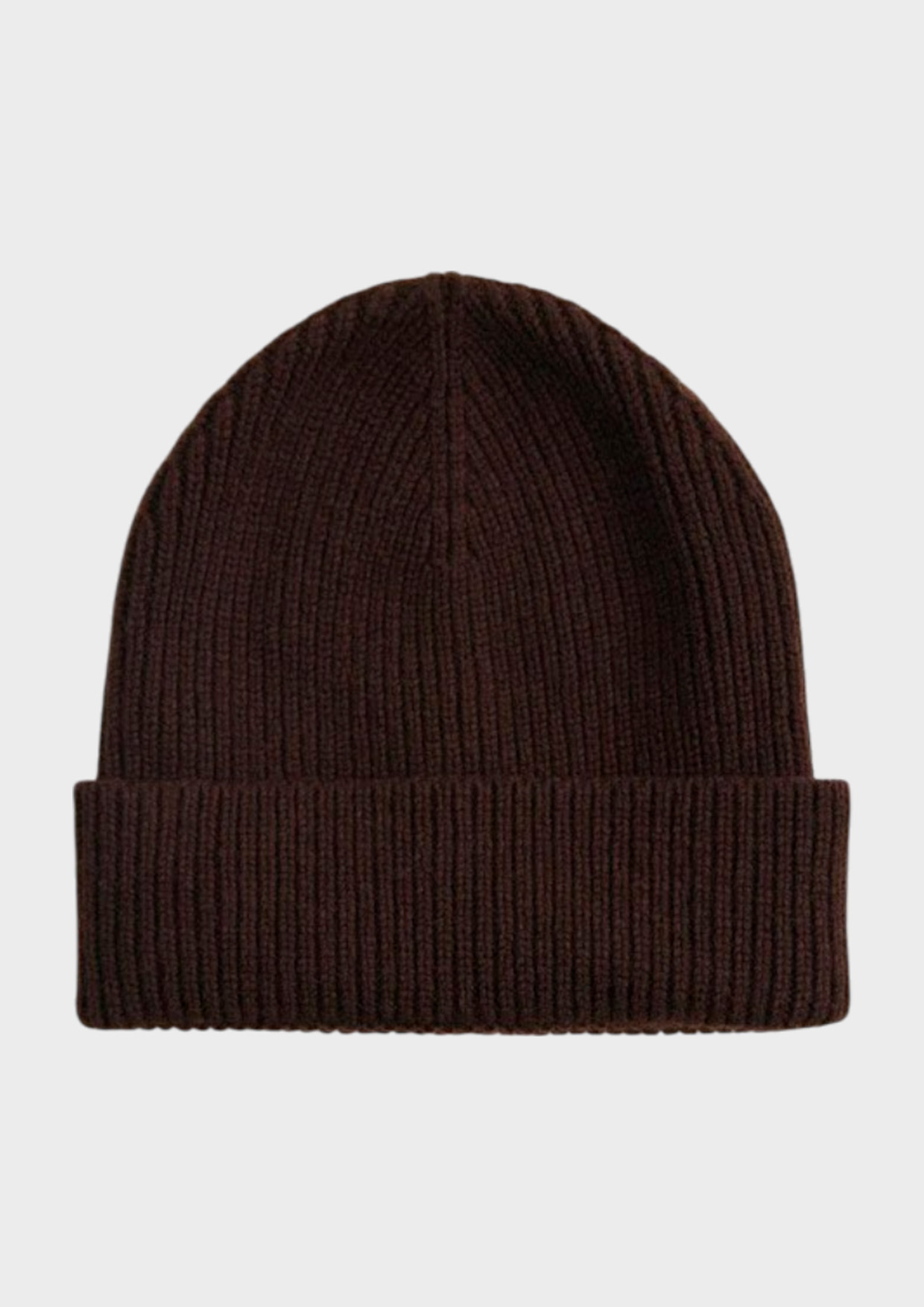 Шапка в рубчик с широким отворотом с содержанием шерсти и кашемира.
