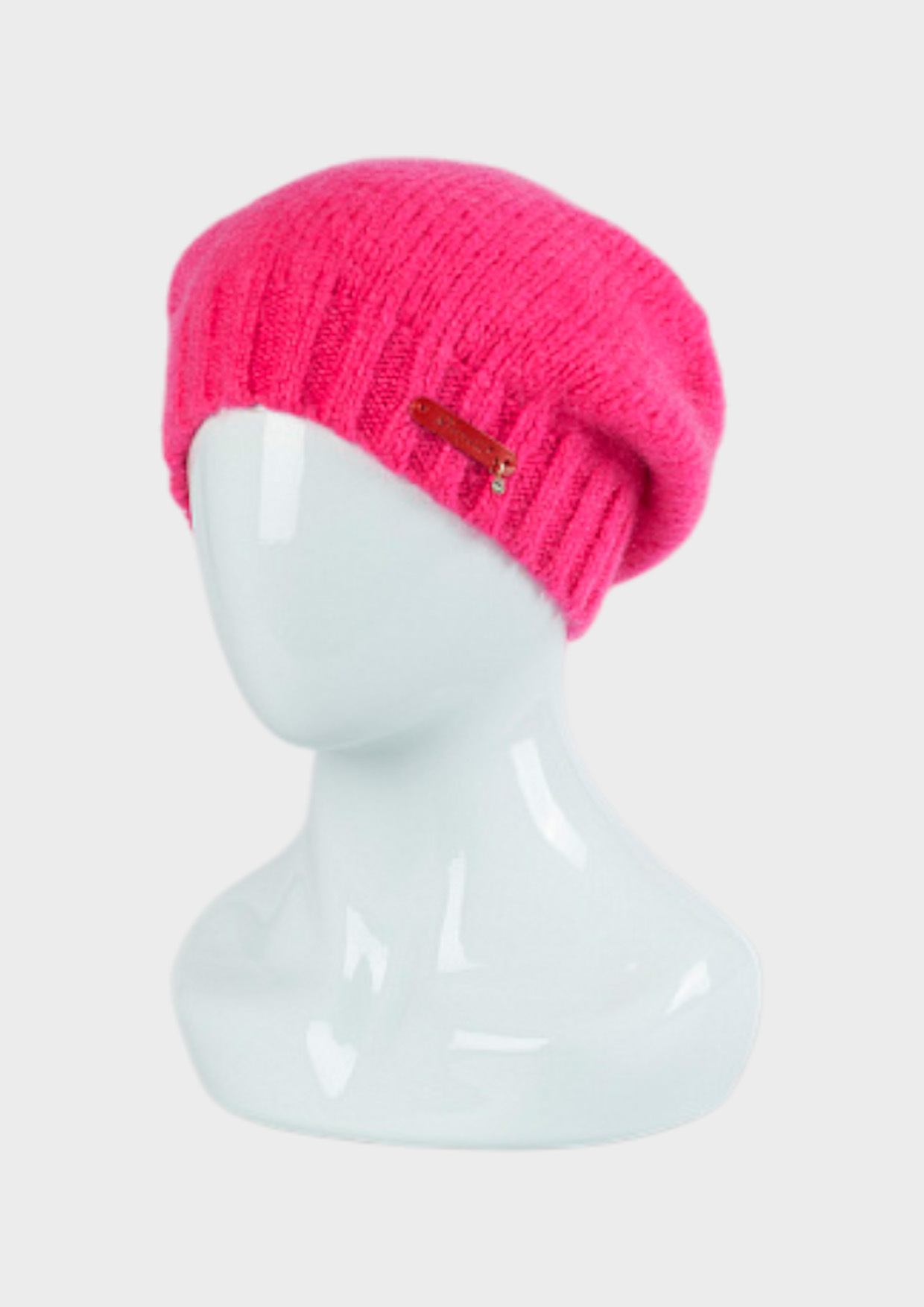 Мягкий берет свободной формы, ножка выполнена в стиле лапша. Головной убор связан из премиальной итальянской пряжи с добавлением королевского мохера и шерсти мериноса, что придает изделию легкость и пушистость. Модель украшена фирменной кожаной нашивкой с логотим бренда и сверкающим стразом.