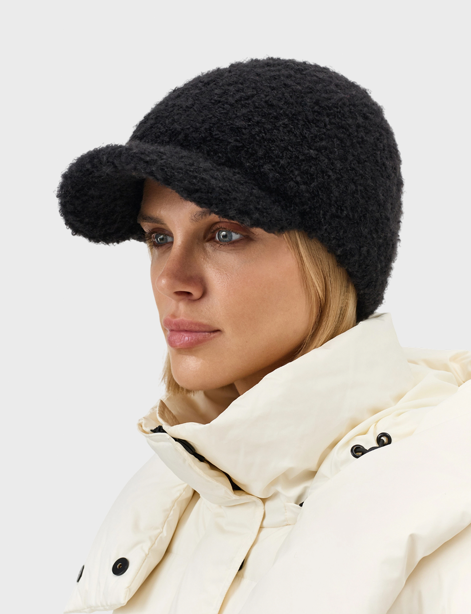 Чёрная шапка с козырьком Bulmer – идеальный аксессуар для стильных женщин! В составе 55% полиэстера, 27% акрила, 15% шерсти и 3% нейлона вы будете чувствовать комфорт даже в холодную погоду. Стильный козырек защитит от ветра и добавит образу дерзости. Подходит как для прогулок по городу, так и для активного отдыха.