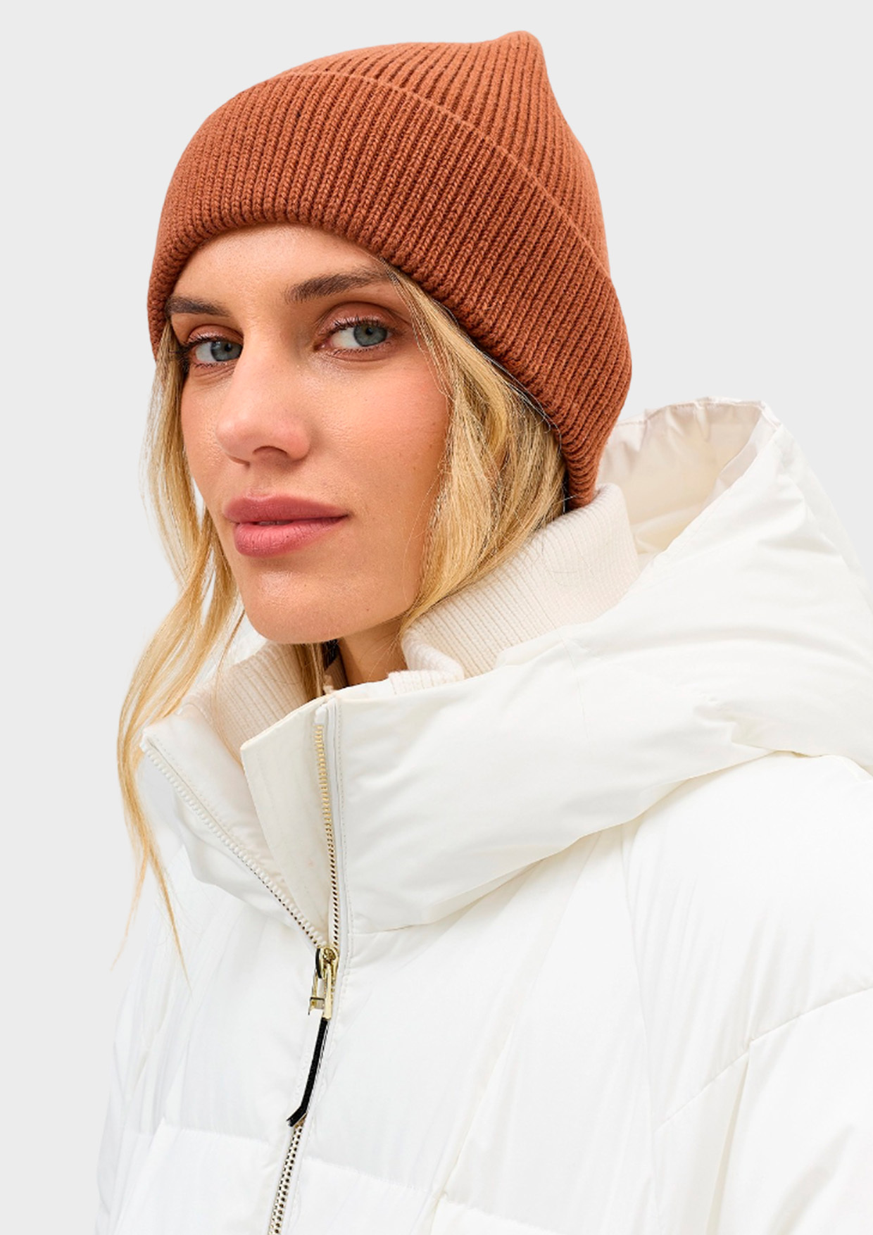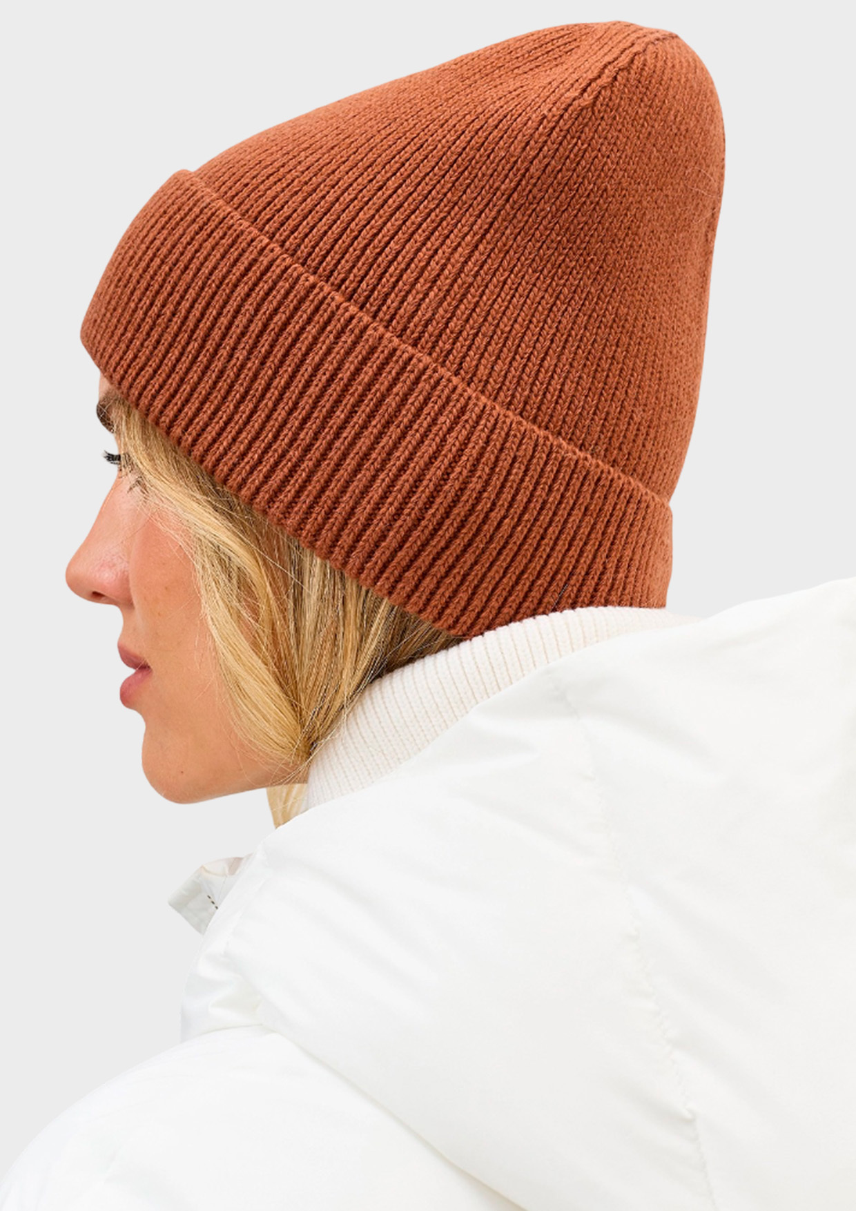 Яркая шапка бини в рубчик с отворотом. В составе вискоза и шерсть.