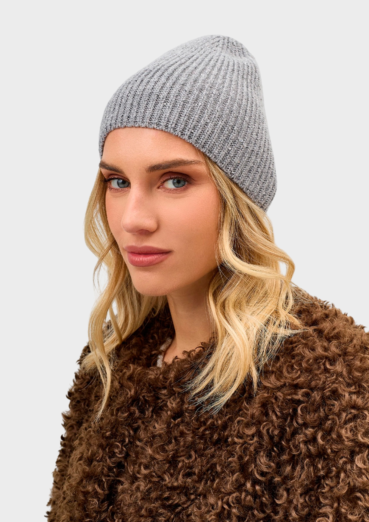 Шапка в мелкий рубчик с ангорой и шерстью в составе.