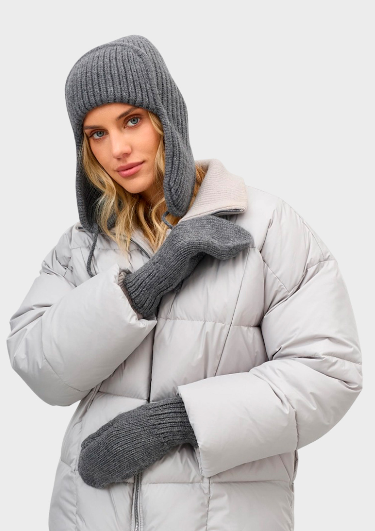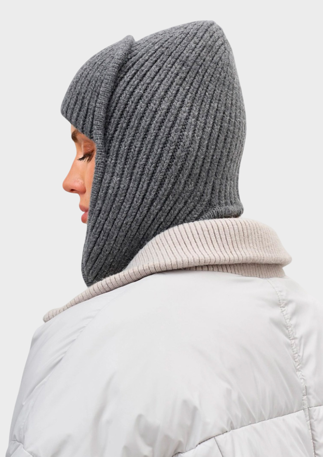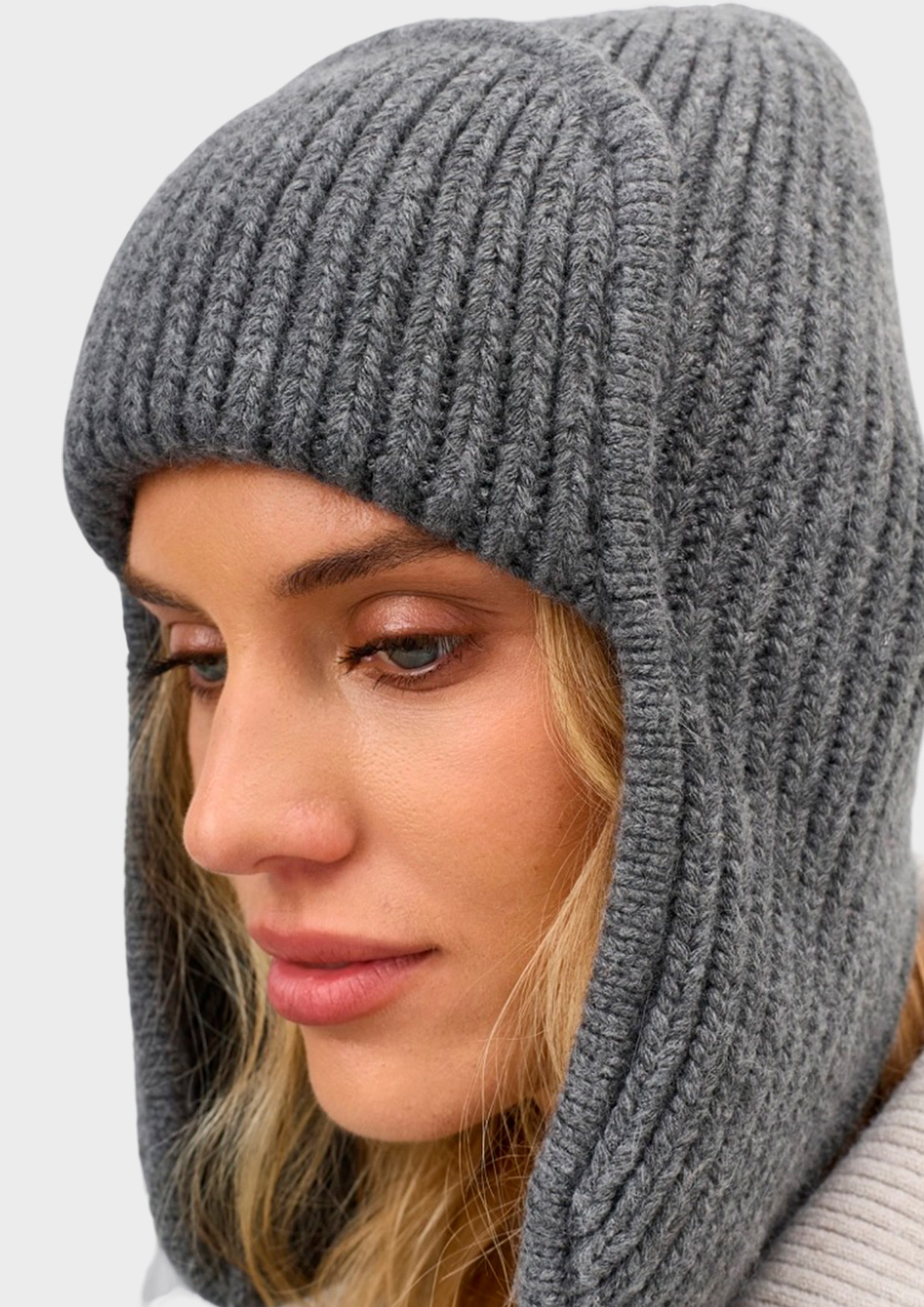 Шапка-ушанка в рубчик с широким отворотом. Тонкие завязки. В составе вискоза и ангора.
