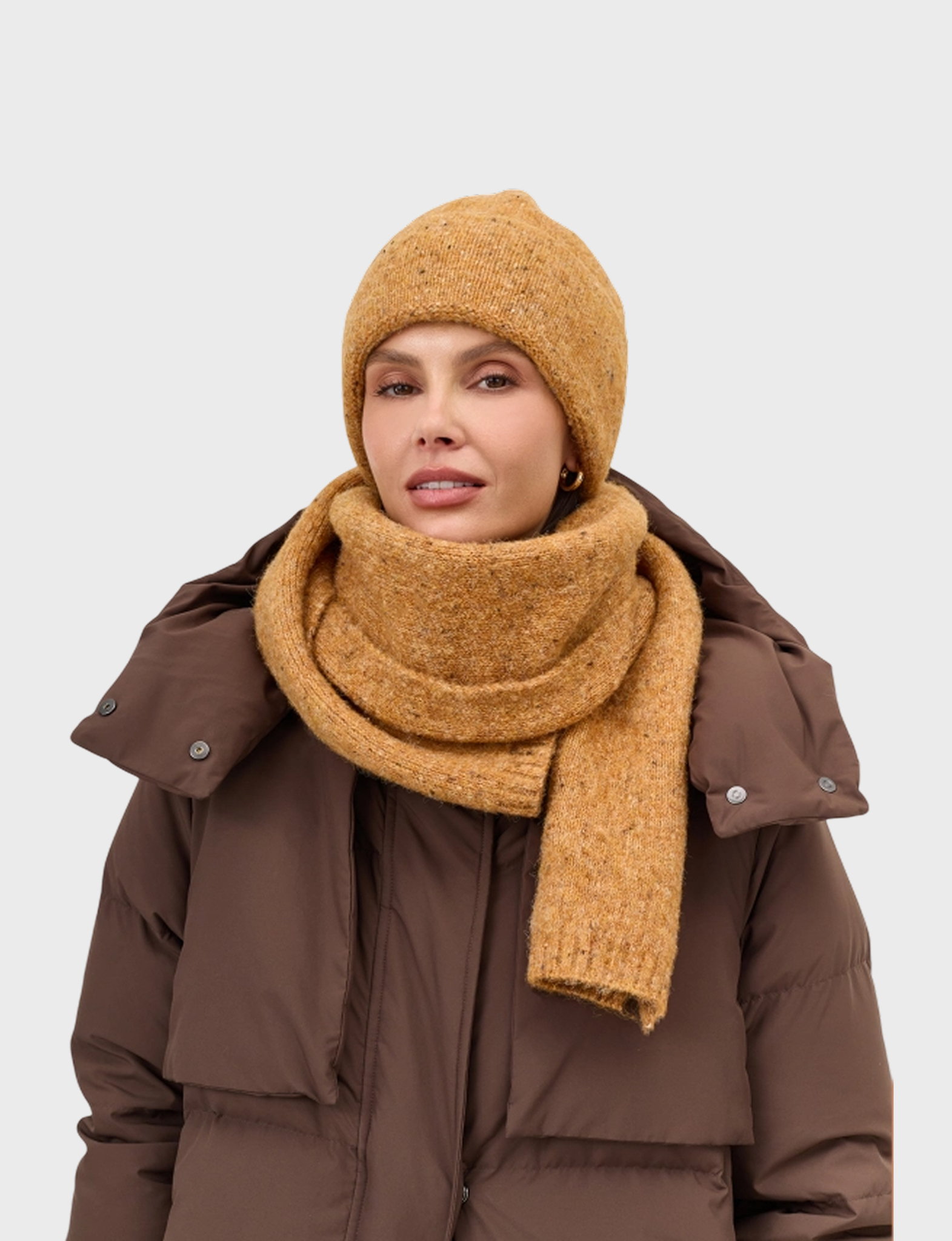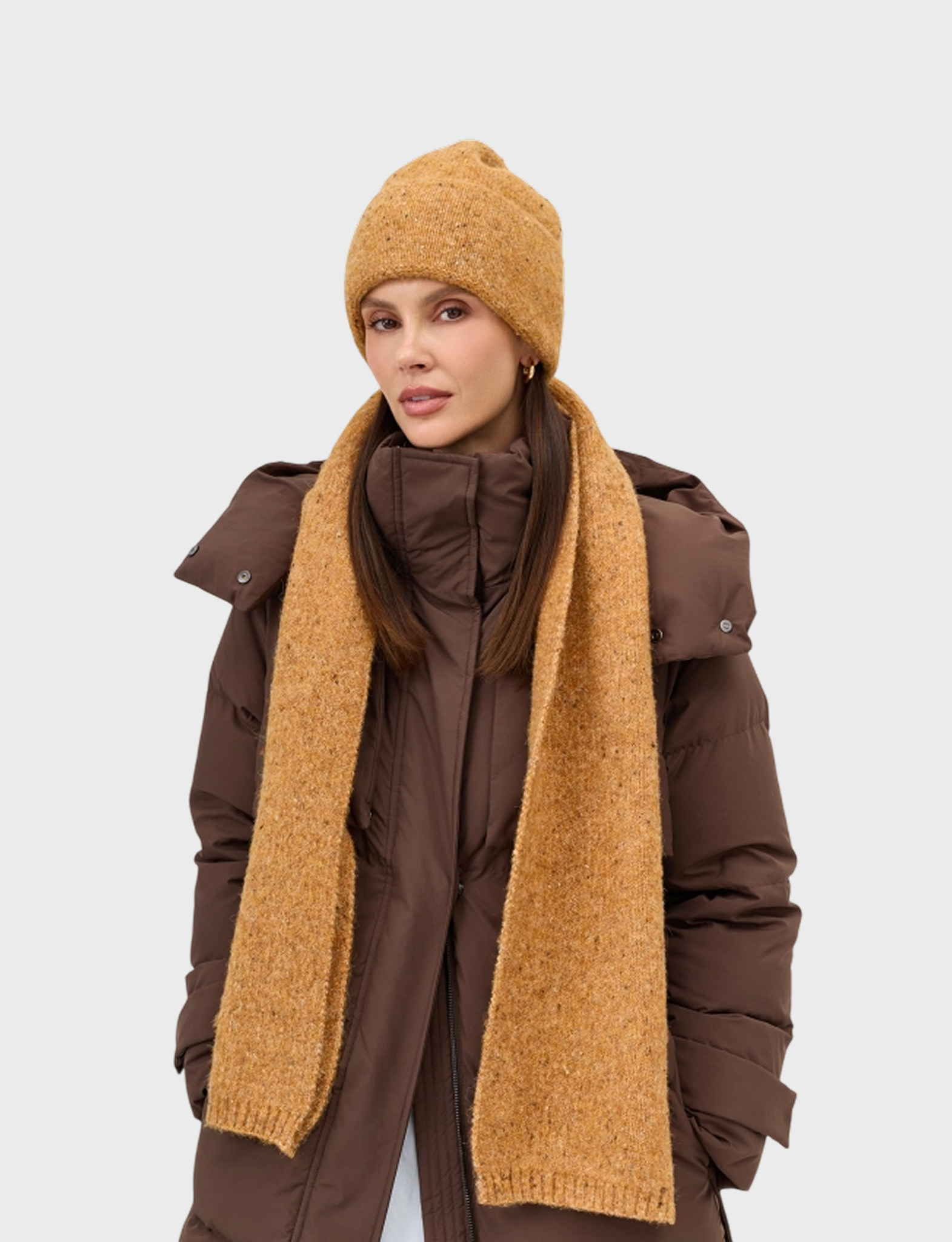 Легкий, мягкий шарфик из комбинации материалов (78% нейлона, 13% полиэстера, 6% шерсти, 3% спандекса) подчеркнет ваш образ оттенком светло-коричневого. Образованность и комфорт – вот что вы почувствуете вместе с ним!" *Идеально сочетает тепло и легкость.