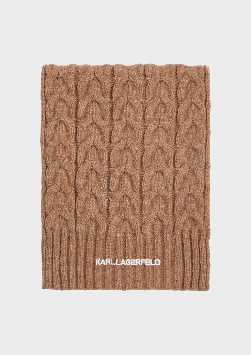 Шарф от легендарного бренда Karl Lagerfeld! Теплый аксессуар из мягкой пряжи (60% полиэстер, 30% нейлон, 10% шерсть) подчеркнёт ваш неповторимый вкус.