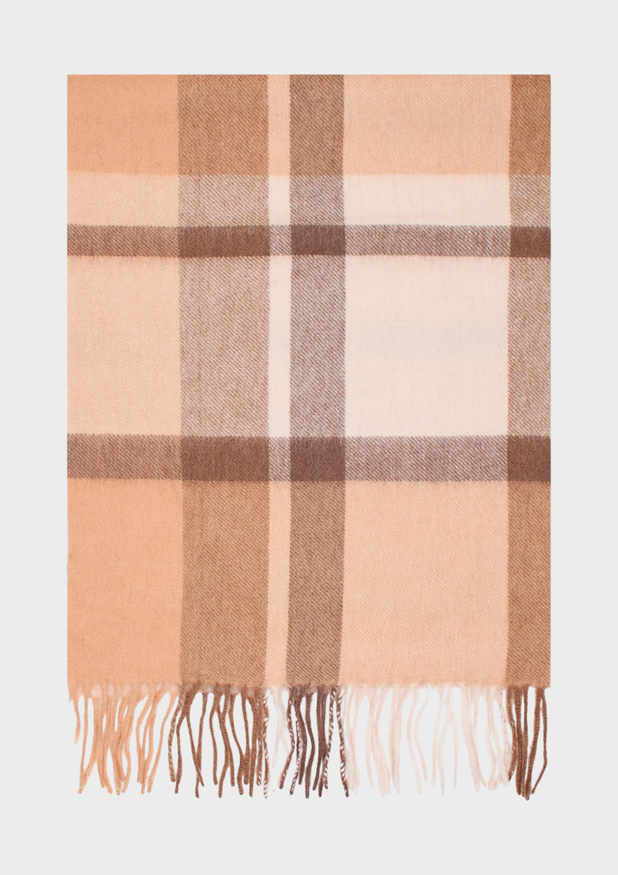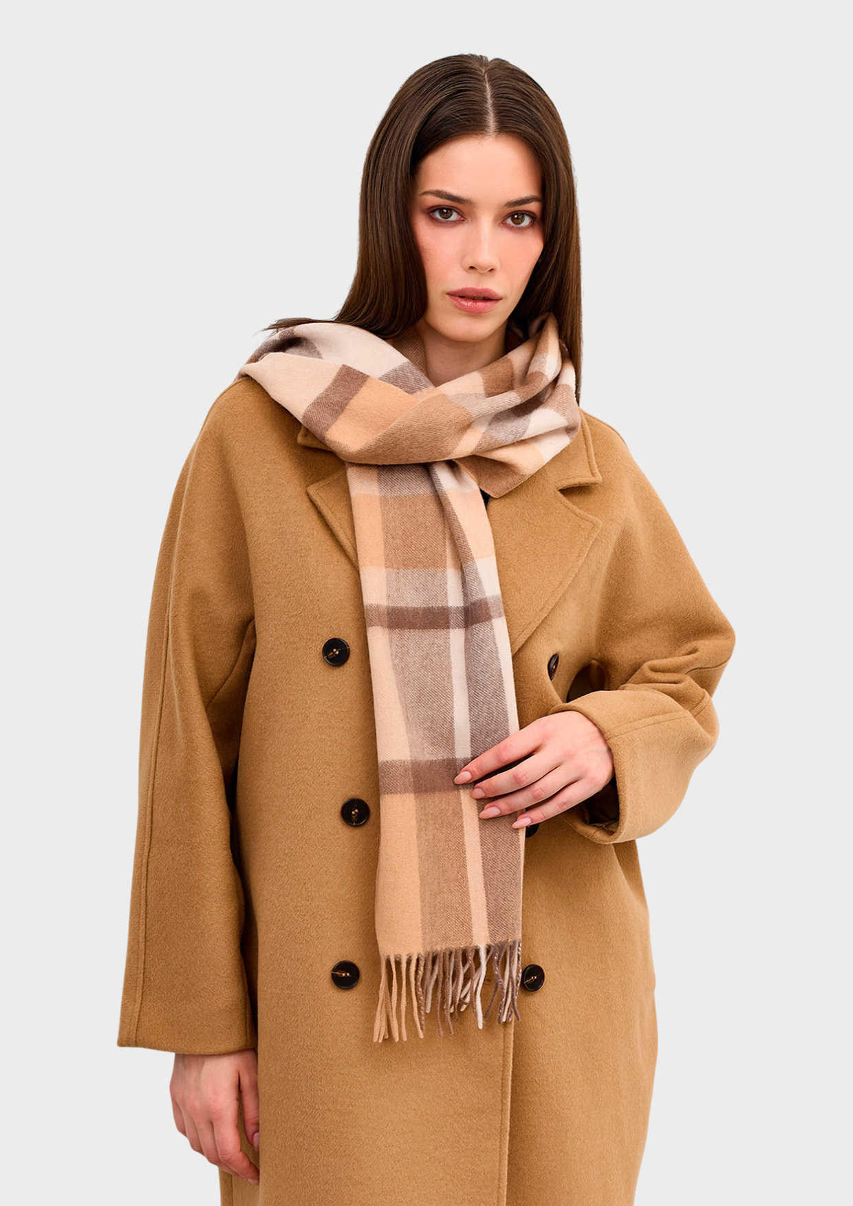 Шерстяной шарф в клетку с деликатной бахромой по краю. Прямоугольная форма, one size.