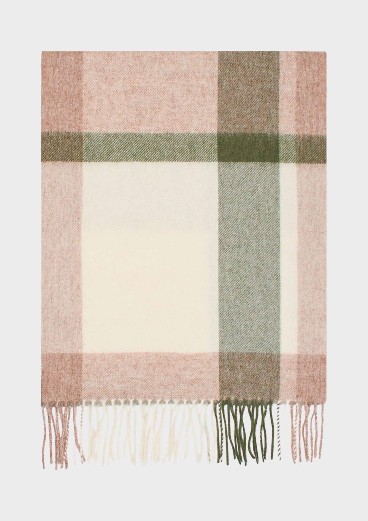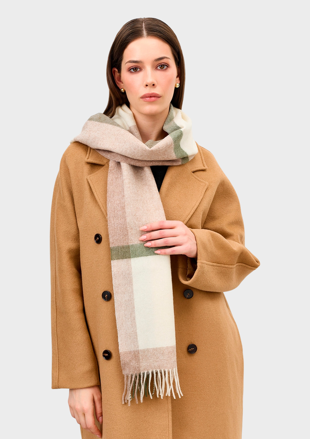 Шерстяной шарф в клетку с деликатной бахромой по краю. Прямоугольная форма, one size.