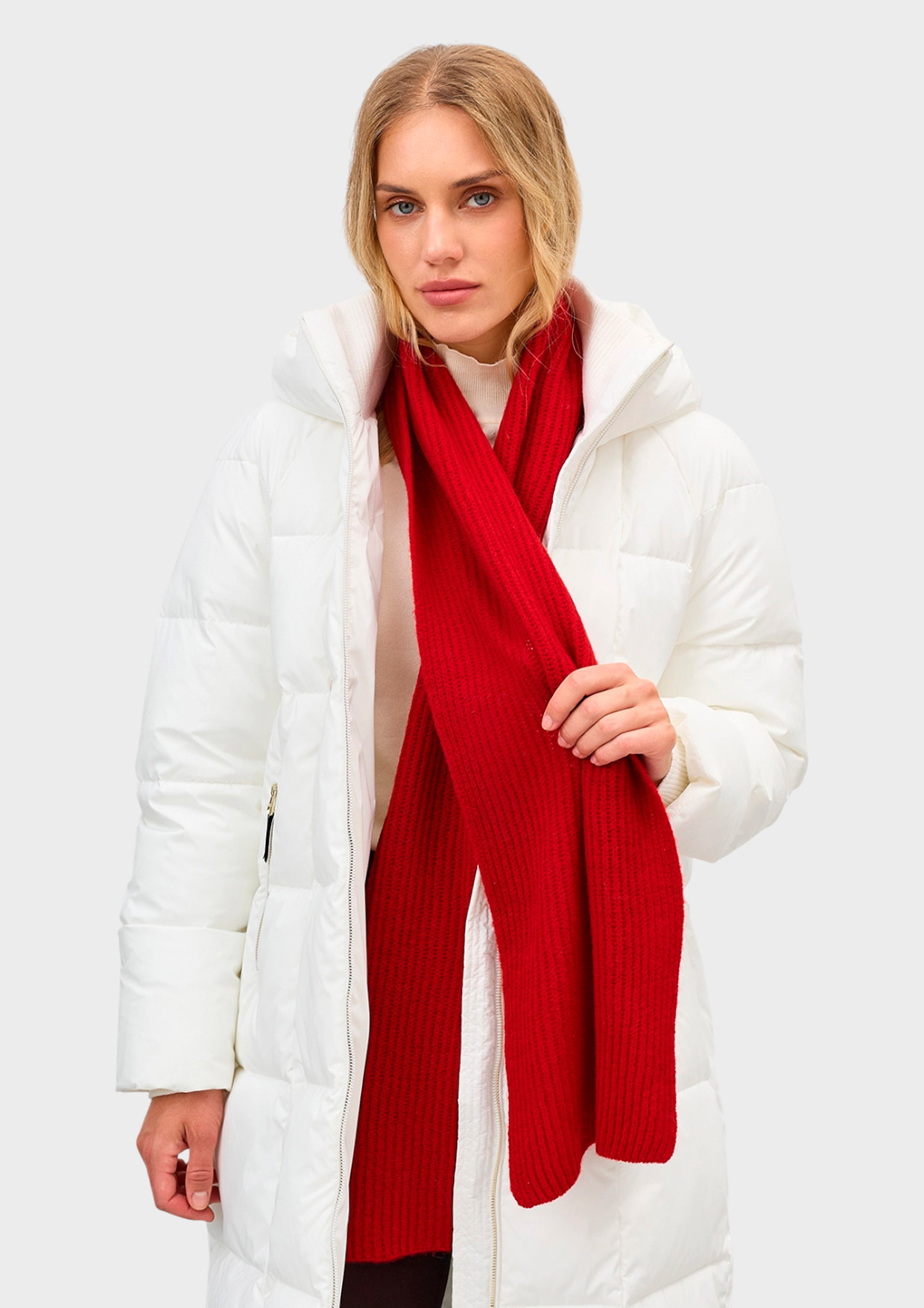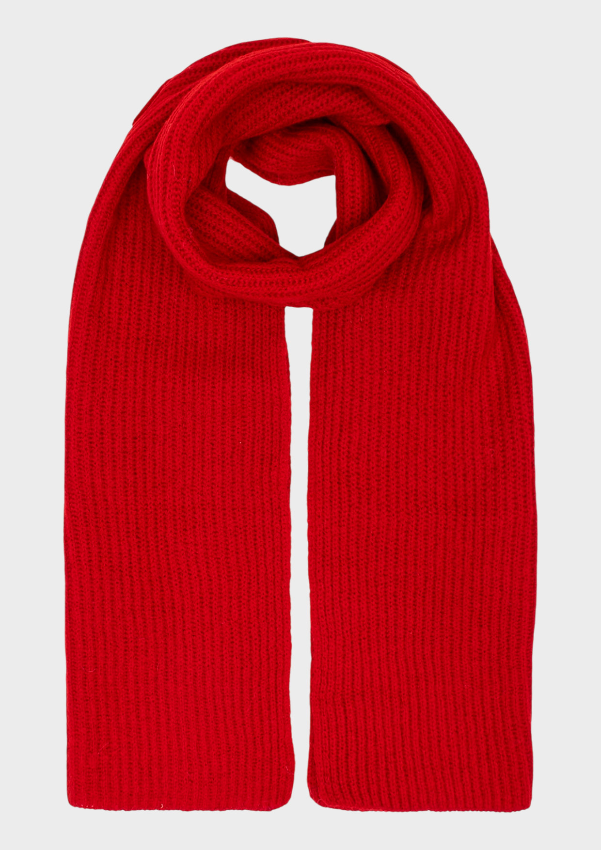 Яркий теплый шарф из 100% шерсти. Объёмная вязка в рубчик. Прямоугольная форма.
