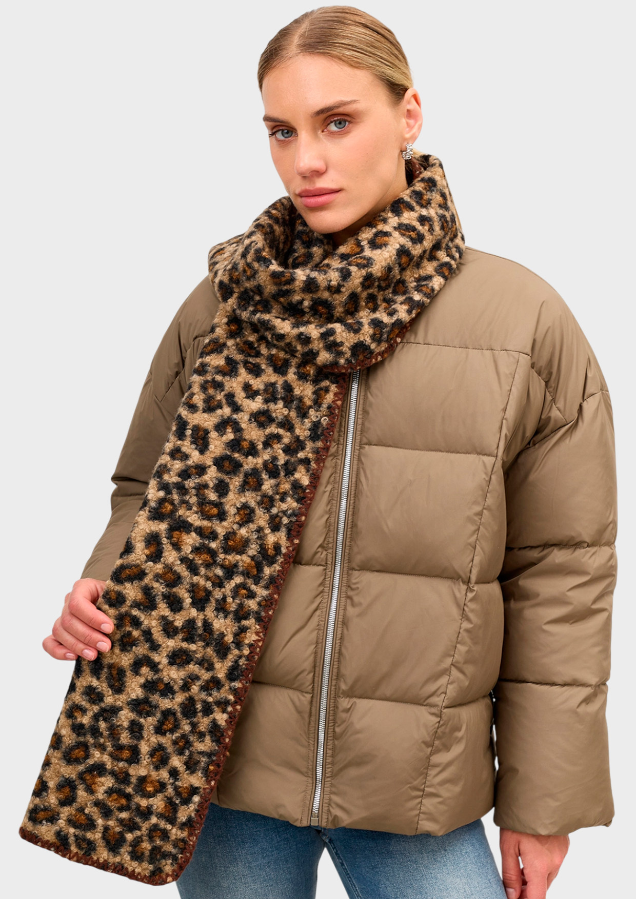 Мягкий шарф из трикотажа букле с анималистичным принтом и акцентной обработкой края. Прямоугольная форма, one size.