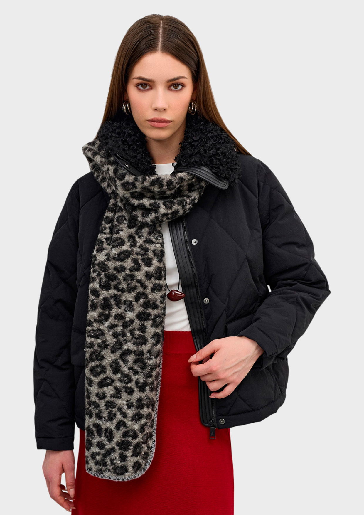 Мягкий шарф из трикотажа букле с анималистичным принтом и акцентной обработкой края. Прямоугольная форма, one size.
