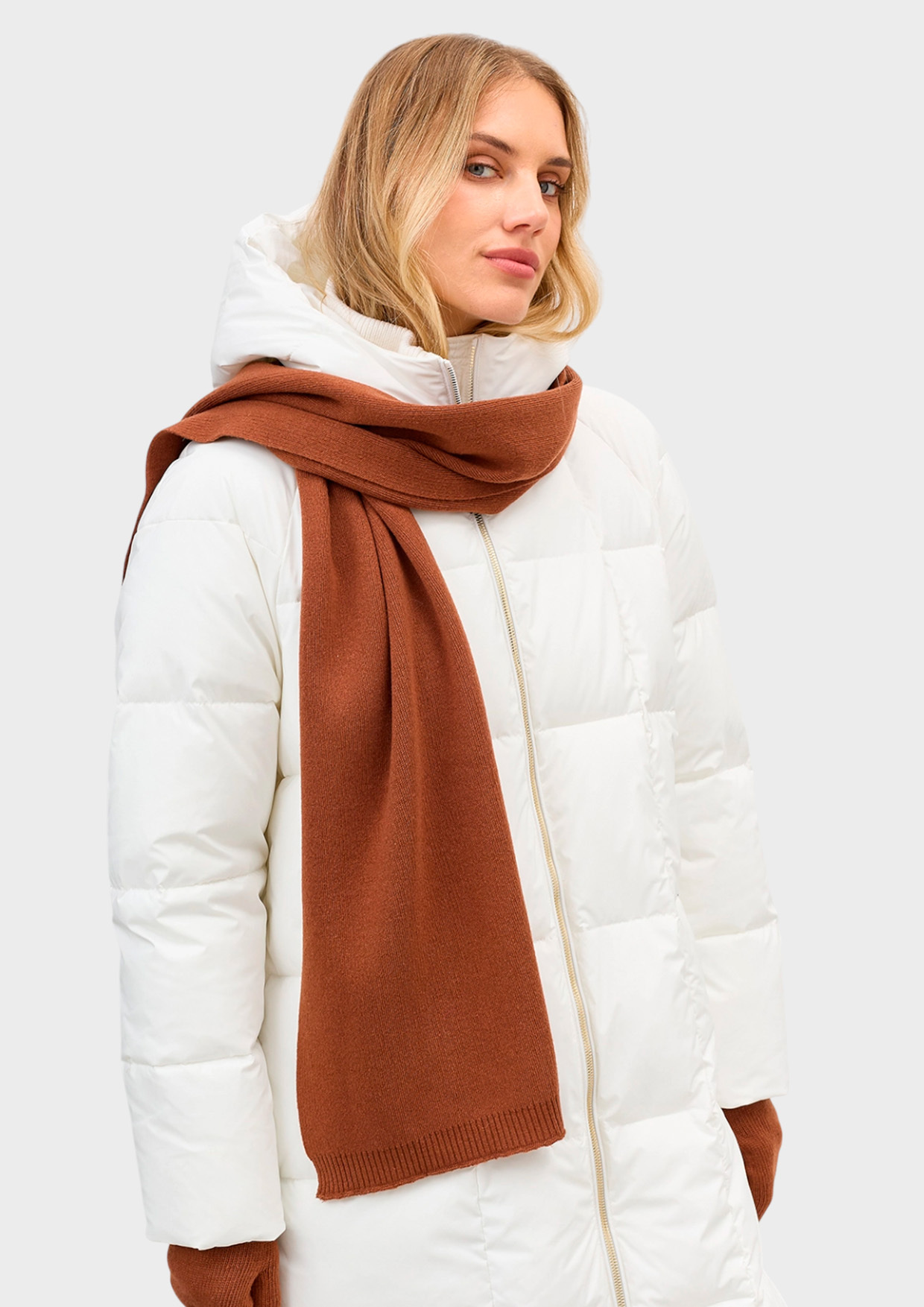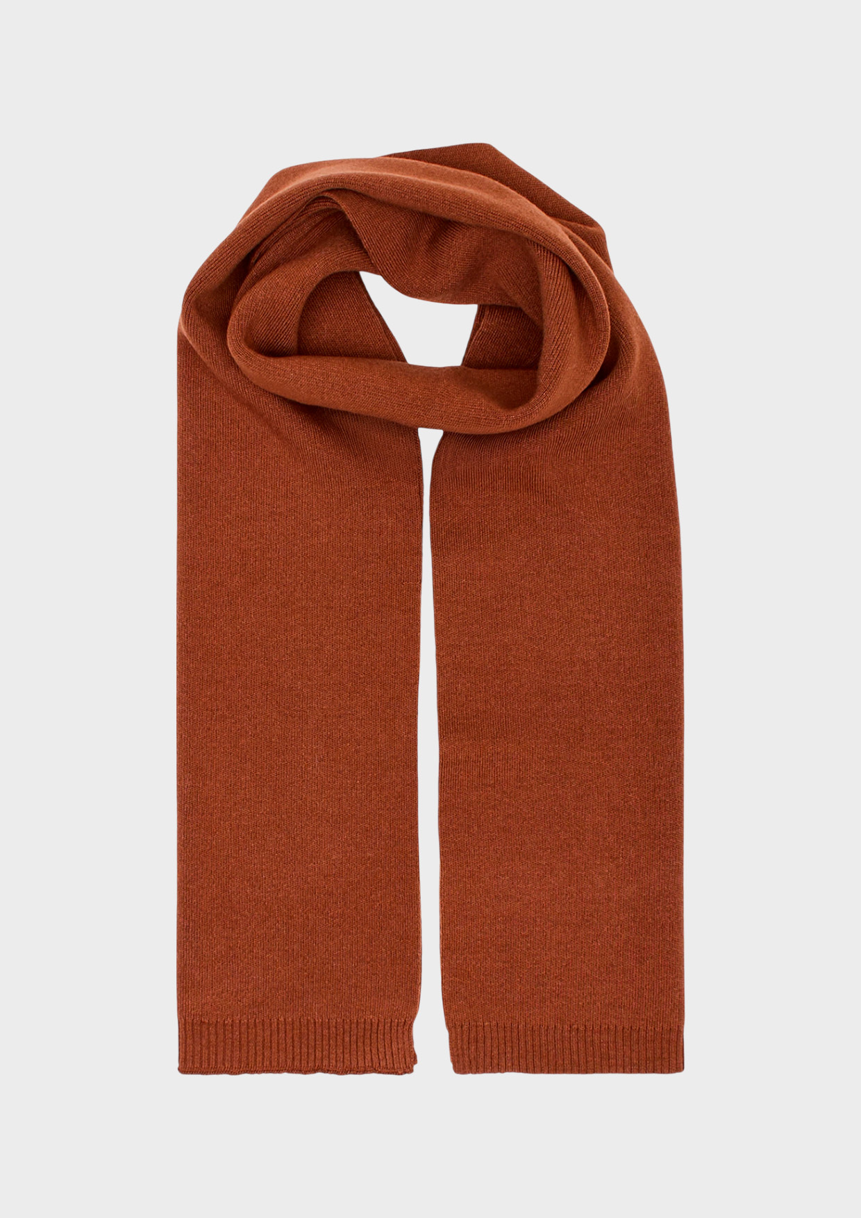 Терракотовый шарф из смесовой вискозы с добавлением шерсти. Гладкая вязка. Прямоугольная форма.