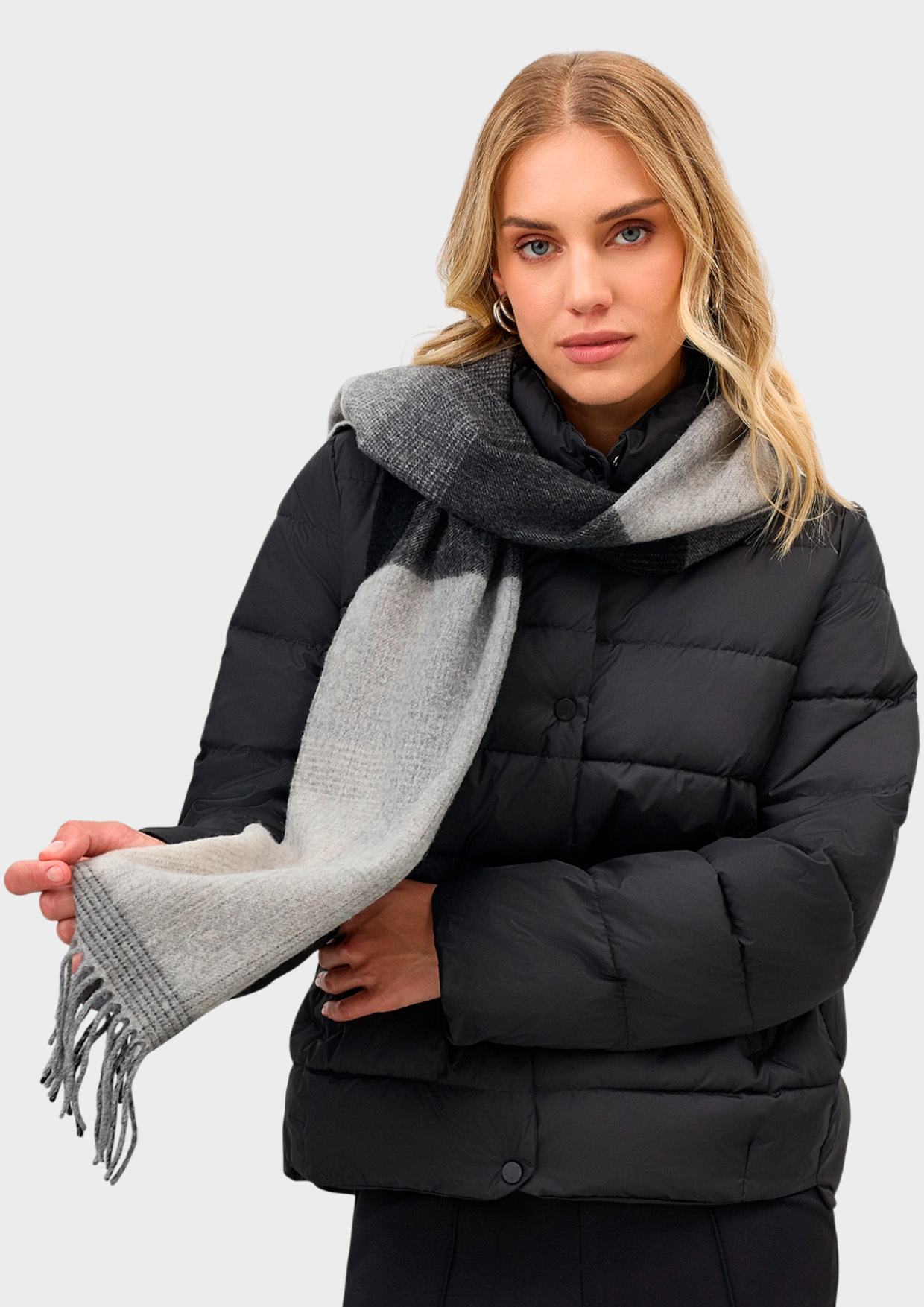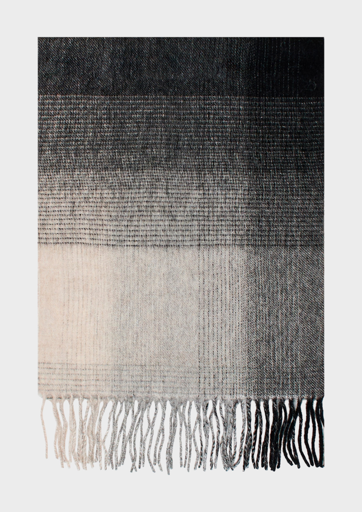 Шарф из 100% шерсти с клетчатым принтом и бахромой по краю. Прямоугольная форма, one size.
