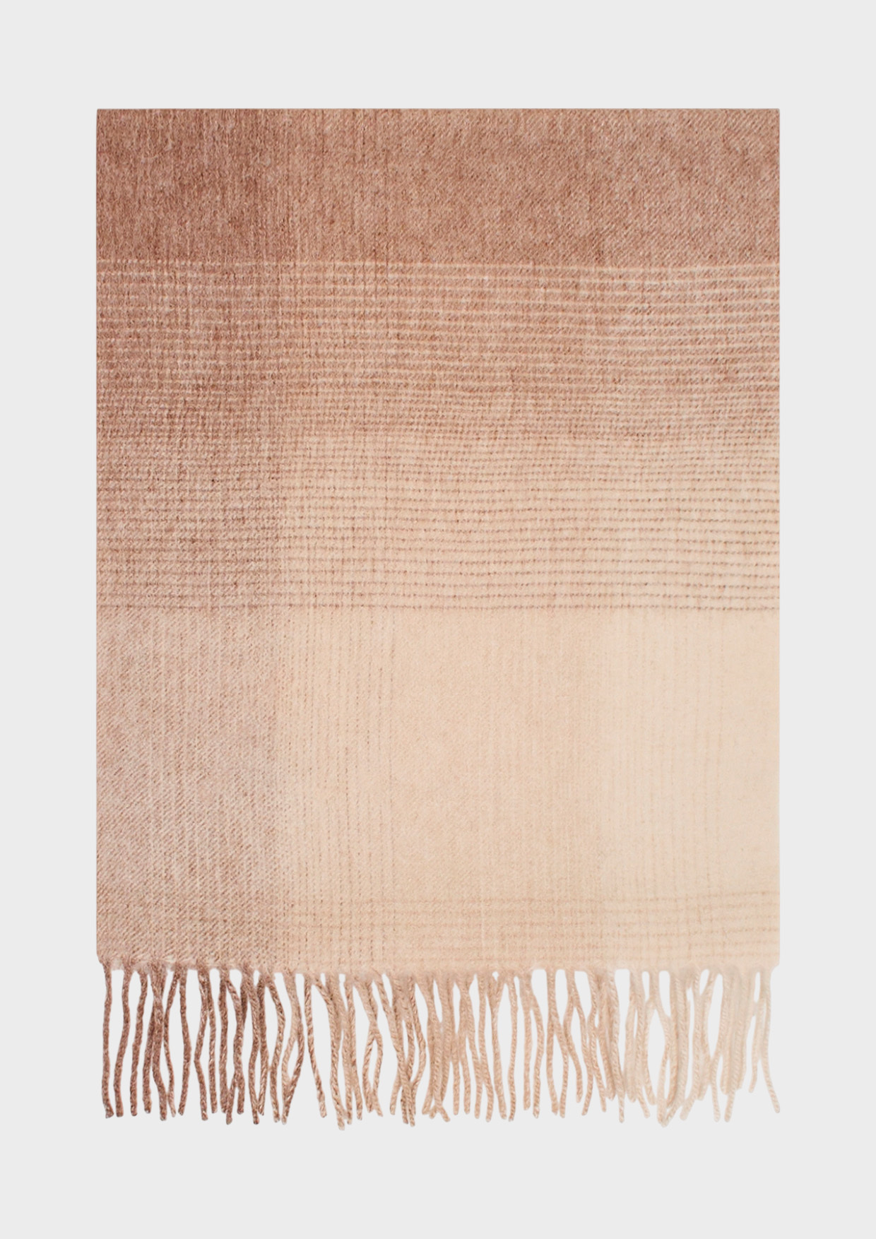 Шарф из 100% шерсти с клетчатым принтом и бахромой по краю. Прямоугольная форма, one size.