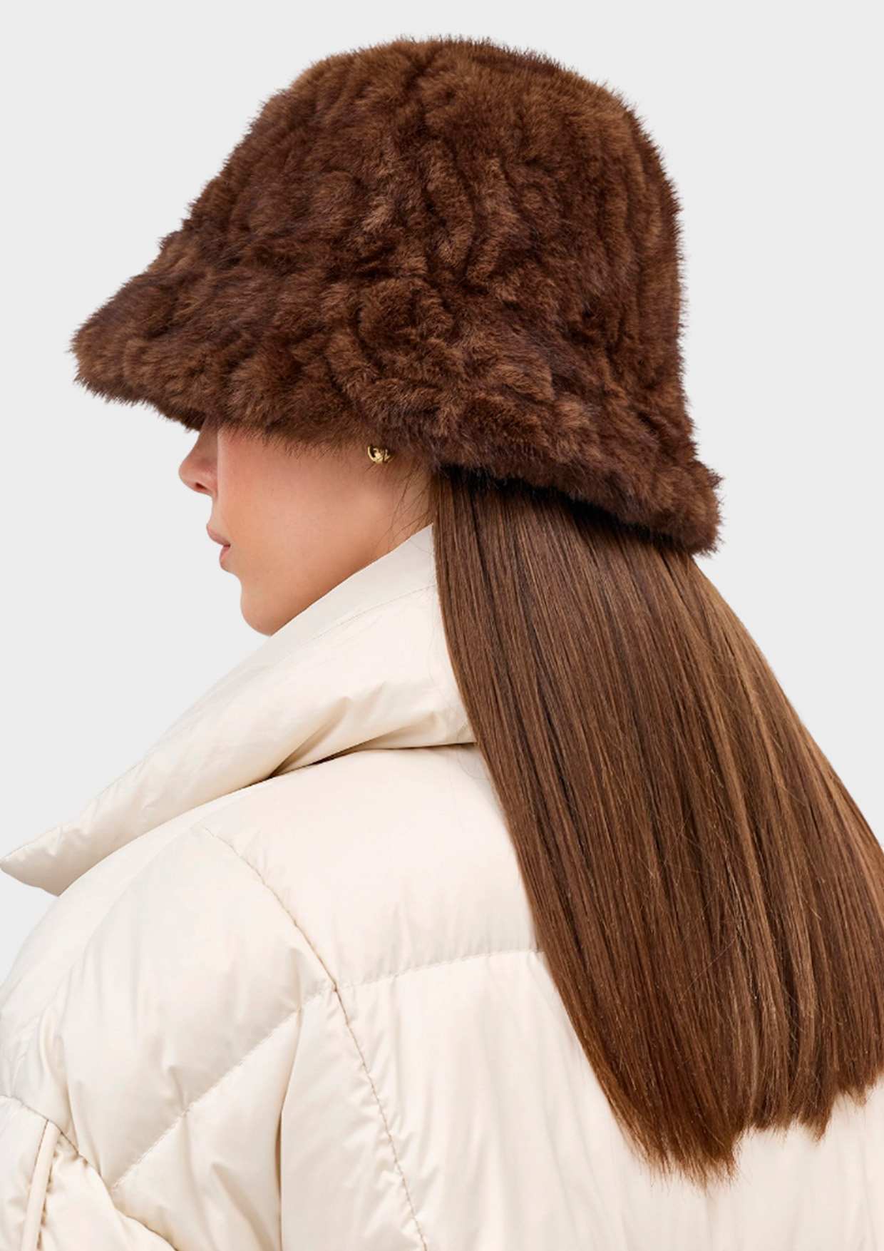 Меховая панама с узкими полями. Внутренняя регулируемая кулиска на шнурке.