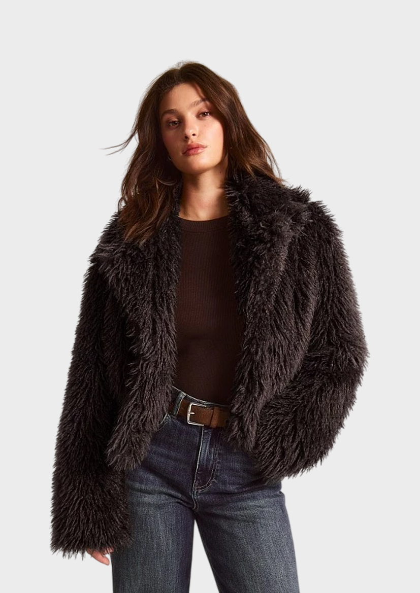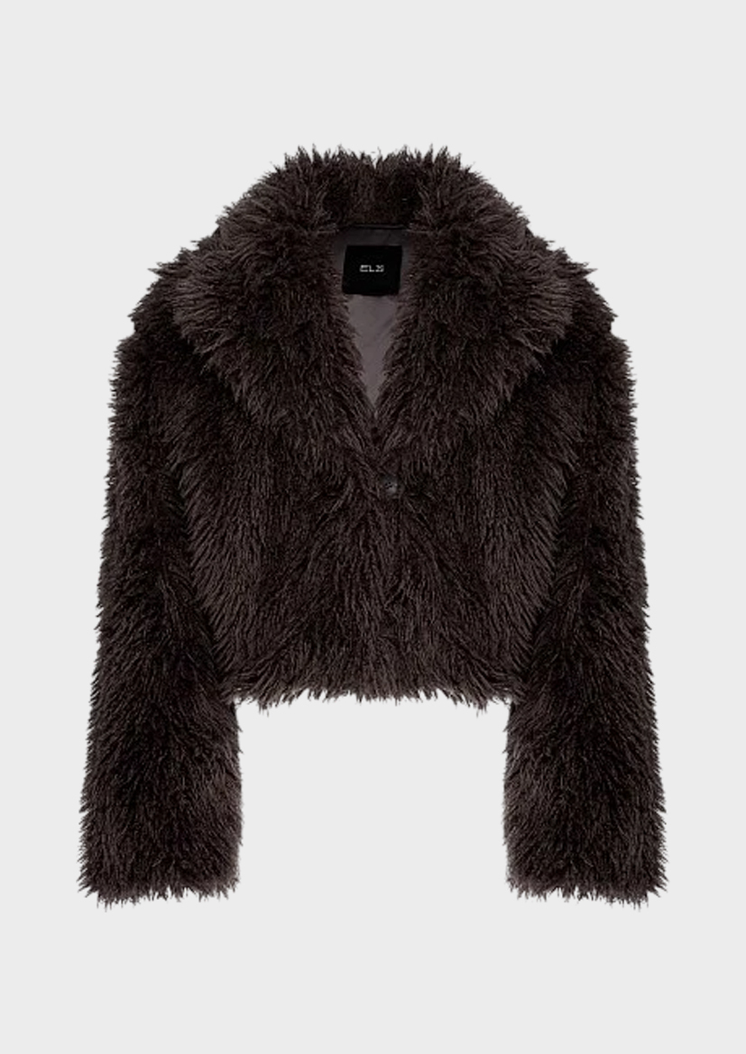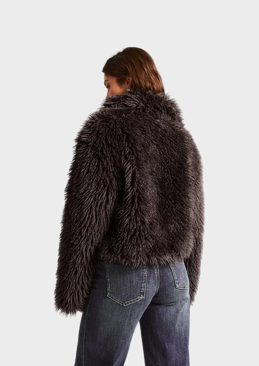 Шуба из искусственного меха шоколадного цвета актуальна для осени и весны. Мех с длинным ворсом тактильно приятен, а дополнительный утеплитель из мягкого синтепона внутри надёжно сохраняет тепло и защищает от ветра.