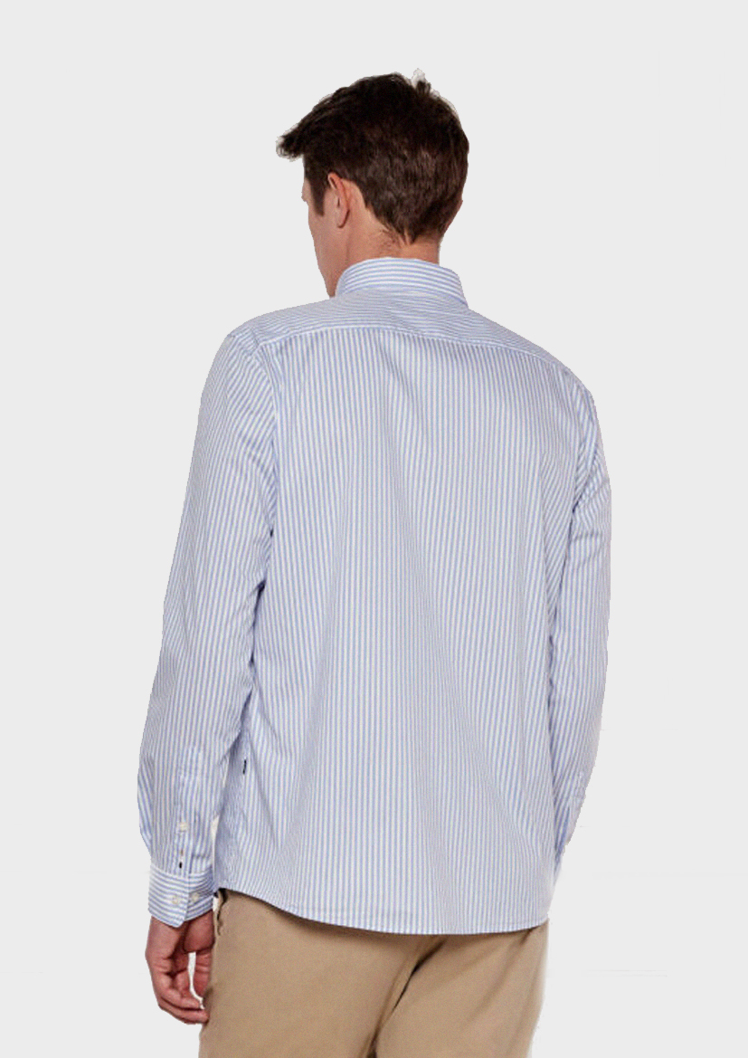 Мужская рубашка бренда Boss в стильном бело-синем исполнении. Изготовлена из 100% хлопка, что обеспечивает комфорт при носке и простоту ухода. Изделие отличается высоким качеством и строгим дизайном, идеально подходящим как для деловых встреч, так и повседневного гардероба.
