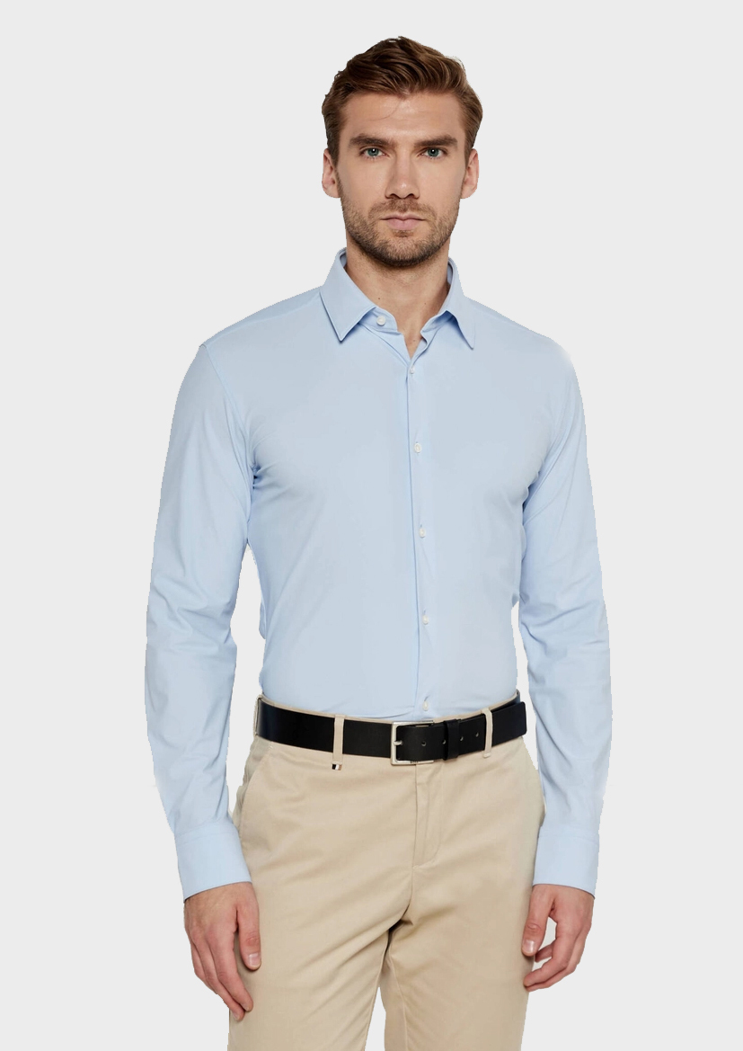 Классическая мужская сорочка, выполненная из эластичной ткани — идеальный выбор для делового образа. Сорочка подчеркивает статус и безупречный вкус своего владельца, идеально сочетаясь как с костюмами, так и с джинсами.