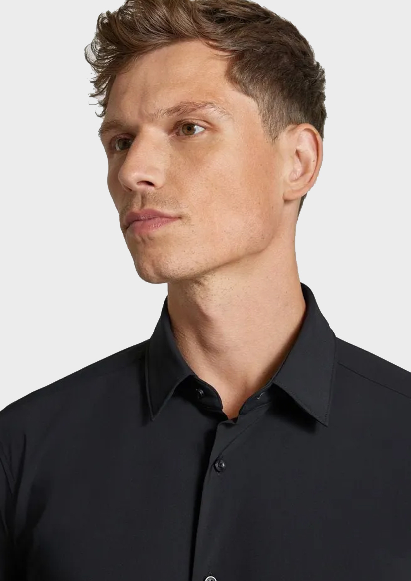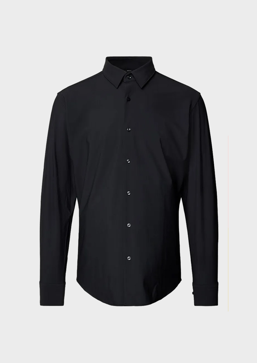 Мужская сорочка BOSS P-Joe – ваш надежный спутник в мире стиля и комфорта! Черный цвет идеально подходит для деловых встреч и вечерних мероприятий. Эластичная ткань (76% полиамид, 24% эластан) обеспечивает свободу движений и безупречный внешний вид. Дизайн от BOSS подчеркивает статус и придает уверенности. В сочетании с классическим костюмом создает безукоризненный образ делового человека.
