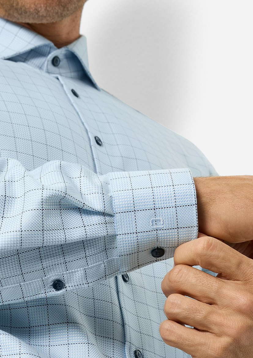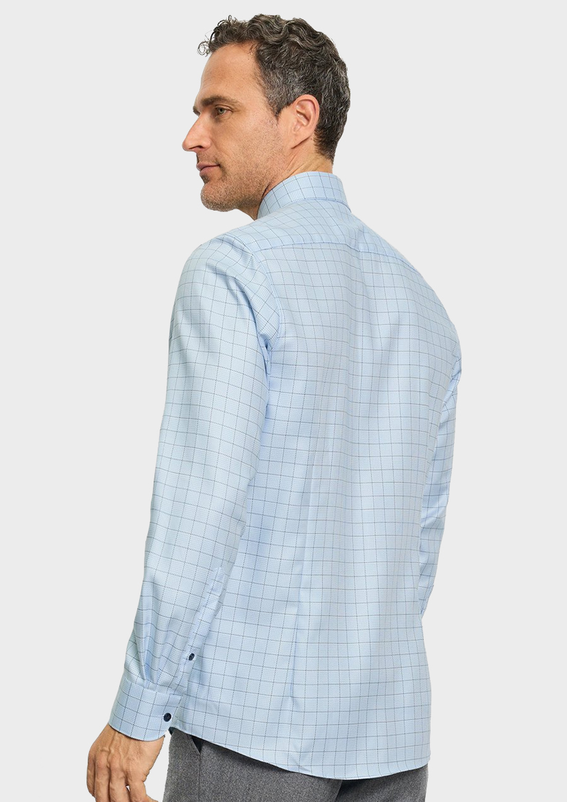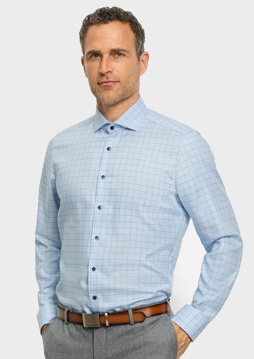 Мужская сорочка OLYMP Level 5 из 100% хлопка обеспечивает комфорт даже при длительном ношении. Гладкая текстура материала подчеркивает статус владельца, а элегантный голубой оттенок подходит к деловому стилю одежды в любое время года.