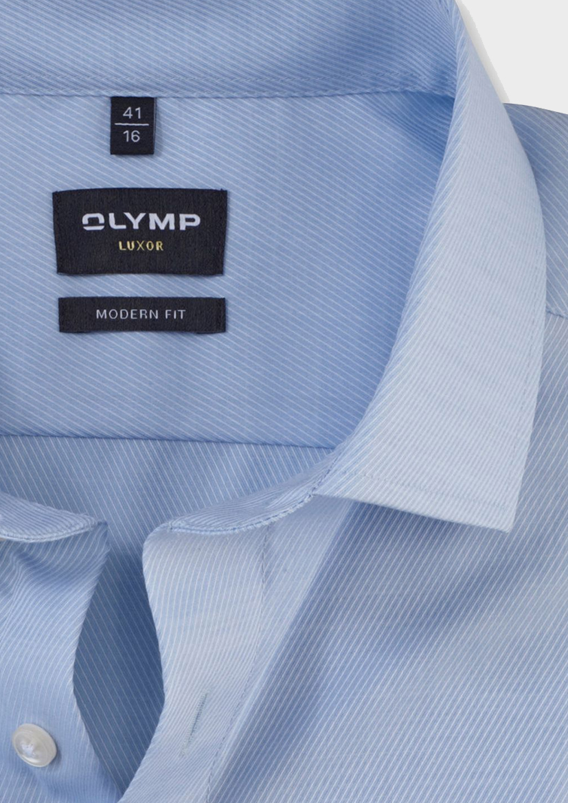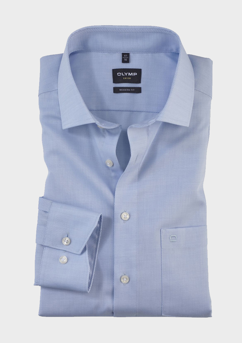 Голубая однотонная мужская рубашка OLYMP коллекции Modern fit из ткани " твил" полуприлегающего силуэта (modern fit).