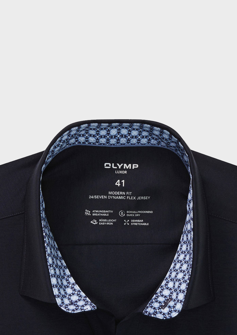 Мужская сорочка OLYMP Luxor Flex jersey – ткань из 92% хлопка и 8% эластана обеспечивает комфортное облегание фигуры, свободу движений и приятный к телу материал. Деликатные оттенки темно-синего цвета подчеркнут элегантность образа и подойдут под любой костюм.