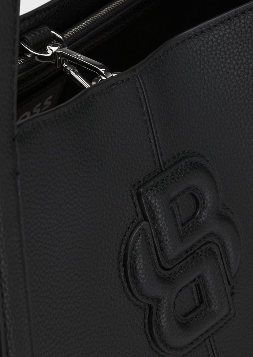 Фирменная сумка-тоут с монограммой Double B. Этот повседневный аксессуар изготовлен из зернистой синтетической ткани. Синтетическая ткань, которую иногда называют искусственной кожей, - это ткань, созданная таким образом, чтобы она напоминала натуральную кожу и/или имела матовый, глянцевый, гладкий или текстурированный вид. Размеры: 45 x 29 x 18 см