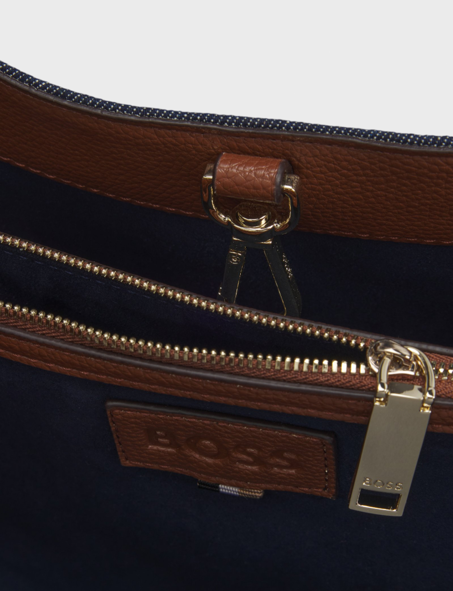 Женская сумка BOSS Anett Tote D – стильный аксессуар тёмно-синего оттенка из 100%-го хлопка, идеально подходящий к осенне-зимнему сезону 2025/2026 года! Эта элегантная модель подчеркнёт ваш безупречный вкус и станет универсальным дополнением любого образа от повседневного до делового. Комфорт использования обеспечат качественные материалы и продуманное исполнение.