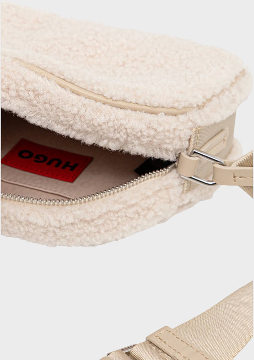 Изящная сумка из коллекции HUGO. Мягкая фактура в стиле тедди добавляет аксессуару элегантность, а компактный размер позволяет включать его в повседневные образы. Внутри — удобный кармашек для мелочей и контрастная нашивка HUGO. Размер: 22 х 15 х 7 см. Состав:100% Текстиль.