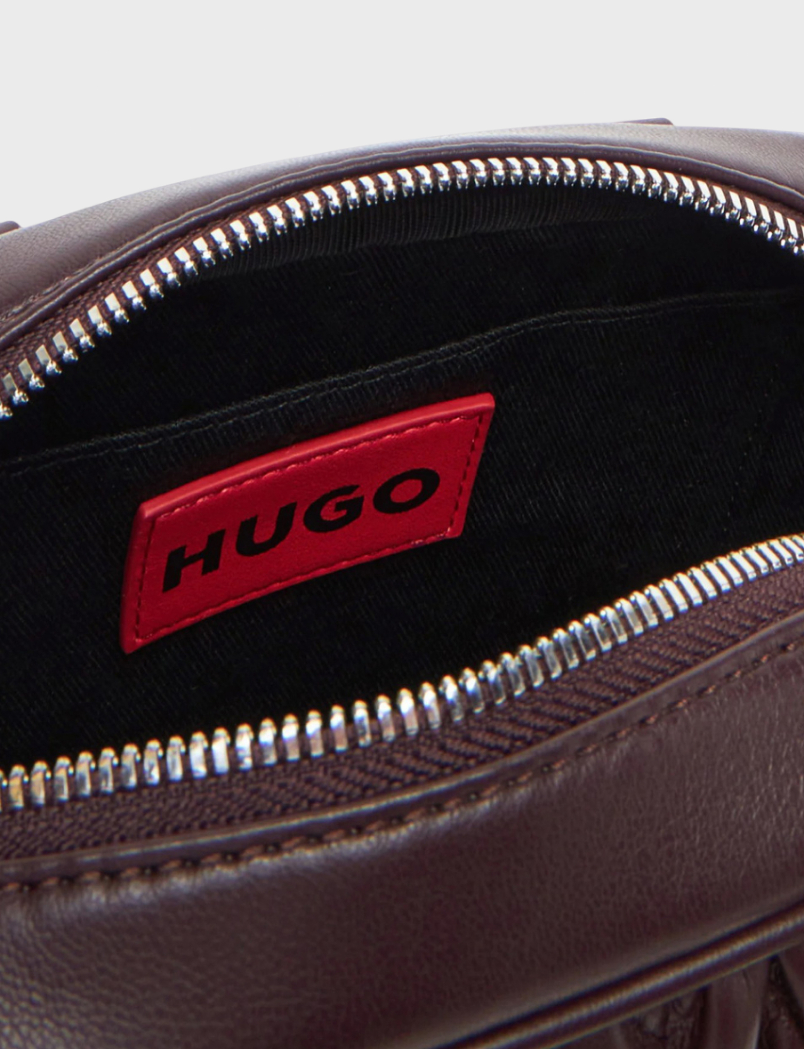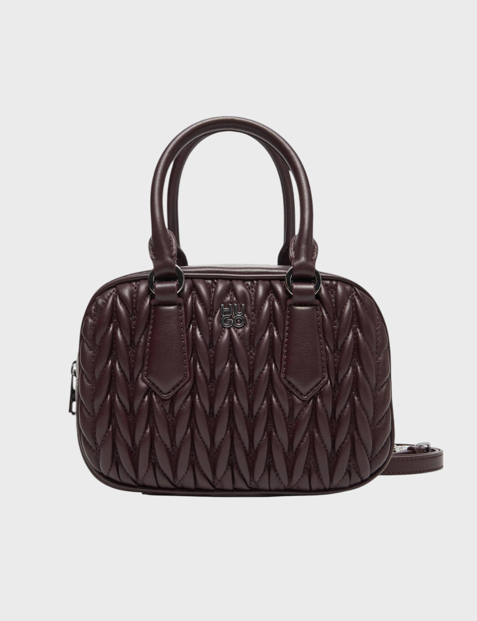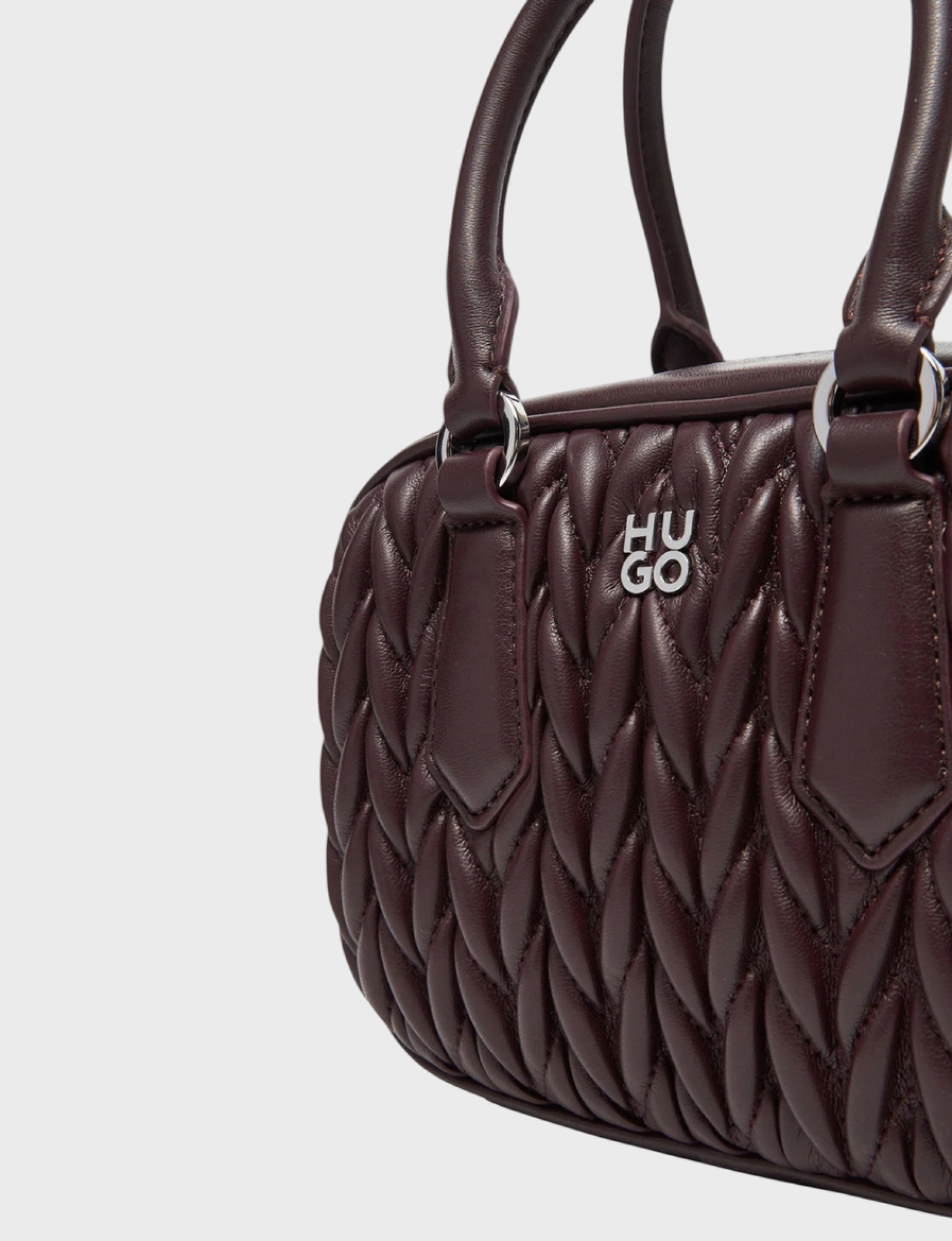 Бордовая сумка HUGO Chris 2.0 MA HANDLE – стильный аксессуар из переработанного полиуретана (62%) и полиэстера (30%), который подчеркнёт ваш элегантный образ! Экоосознанность и мода в одном флаконе: эта женская модель станет вашим верным спутником как в повседневных делах, так и на особых мероприятиях.
