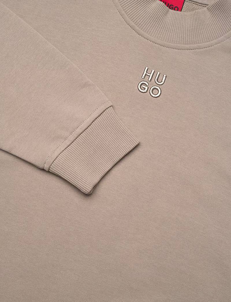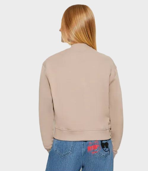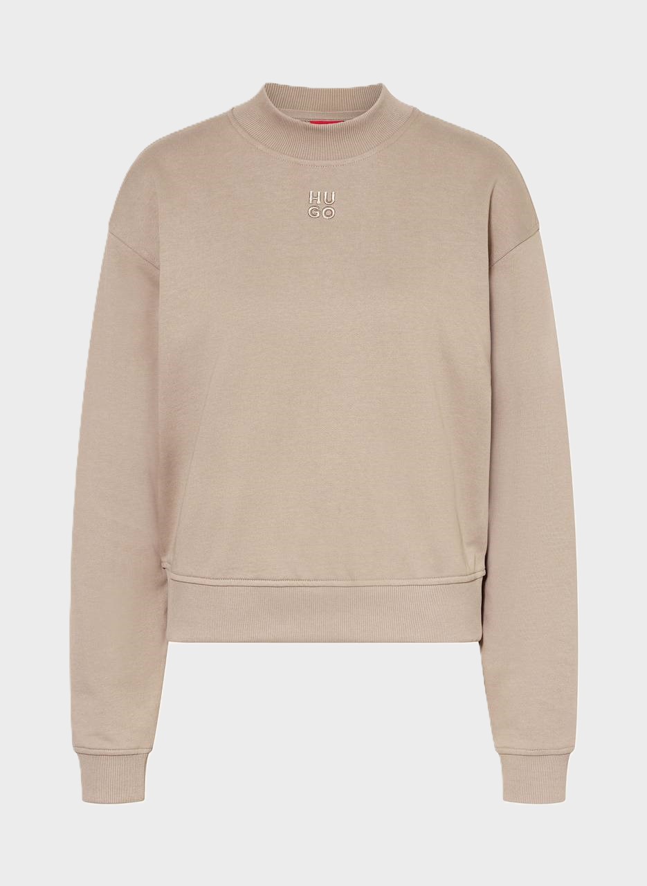 Свитшот Daxandria с манжетами, поясом и высокой горловиной в рубчик выполнен из хлопкового трикотажа френч терри с махровой изнанкой. Модель со спущенной линией плеч украшена контрастным вышитым логотипом марки.